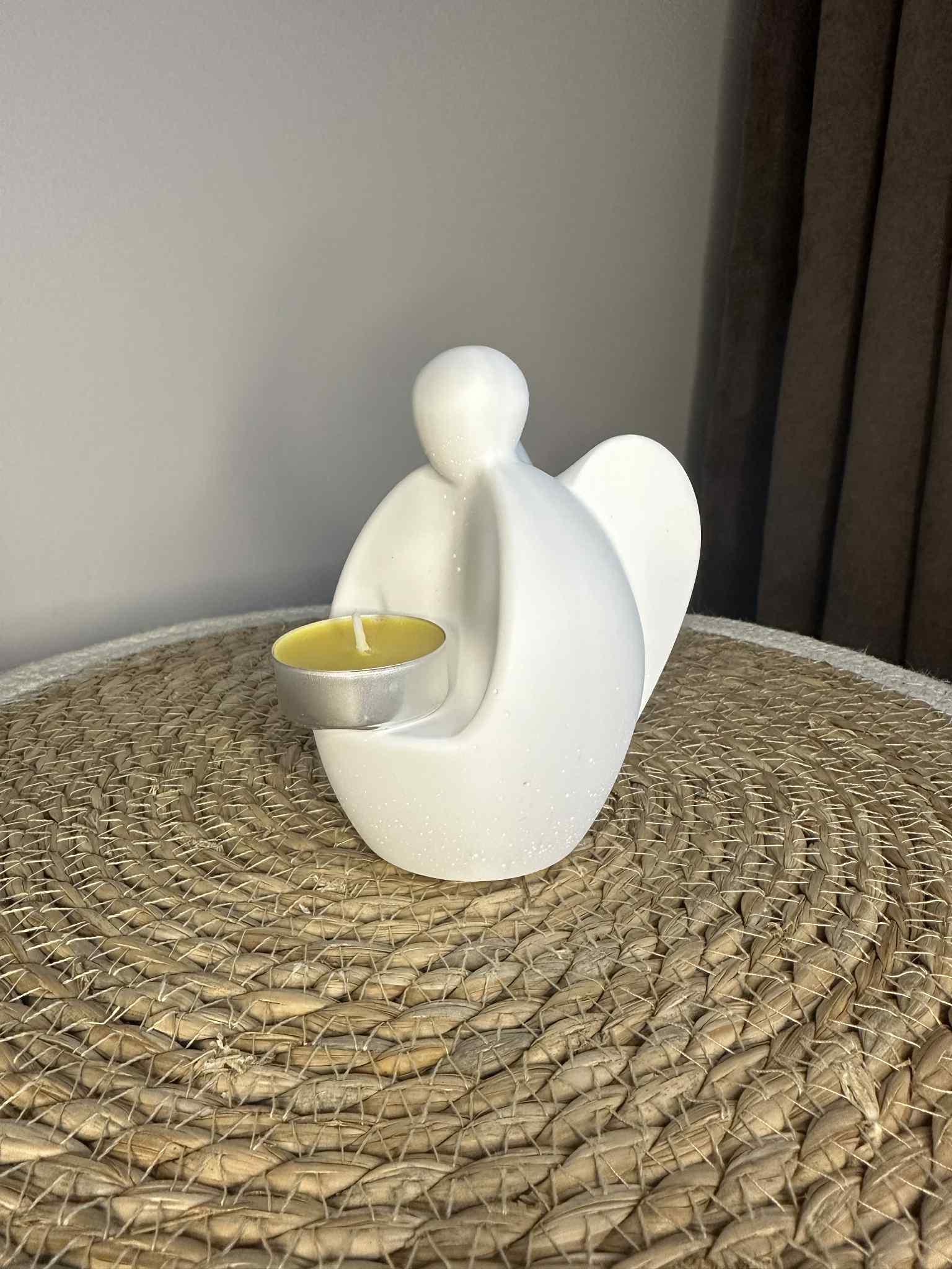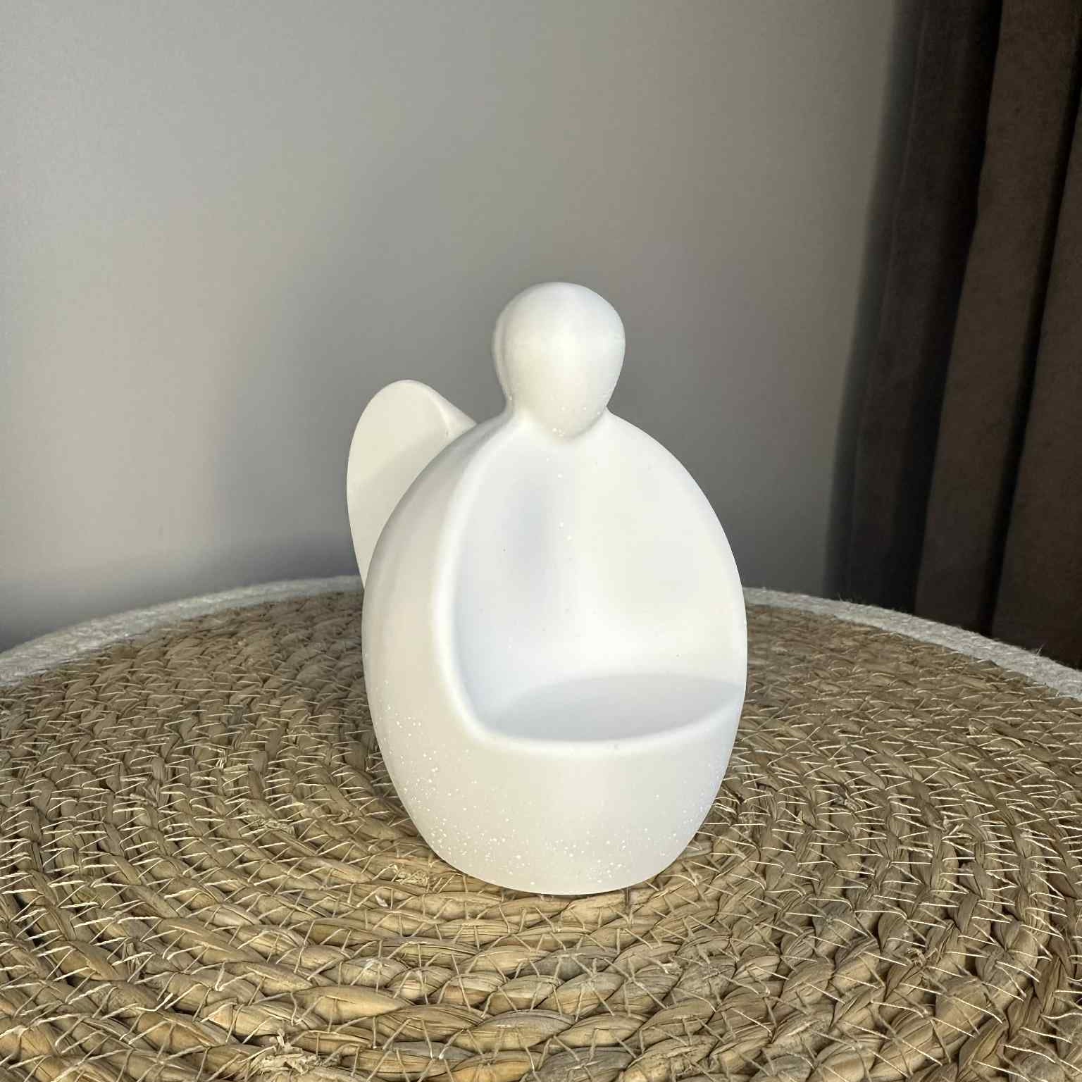Suchen Sie nach einem dezenten und schönen Akzent für Ihr Zuhause oder als Geschenk? Eine handgefertigte Engelsfigur ist ein elegantes Detail, das nicht nur den Raum verschönert, sondern auch praktisch ist. Ein Teelicht kann sicher darauf platziert werden und sorgt so für eine warme und gemütliche Atmosphäre.