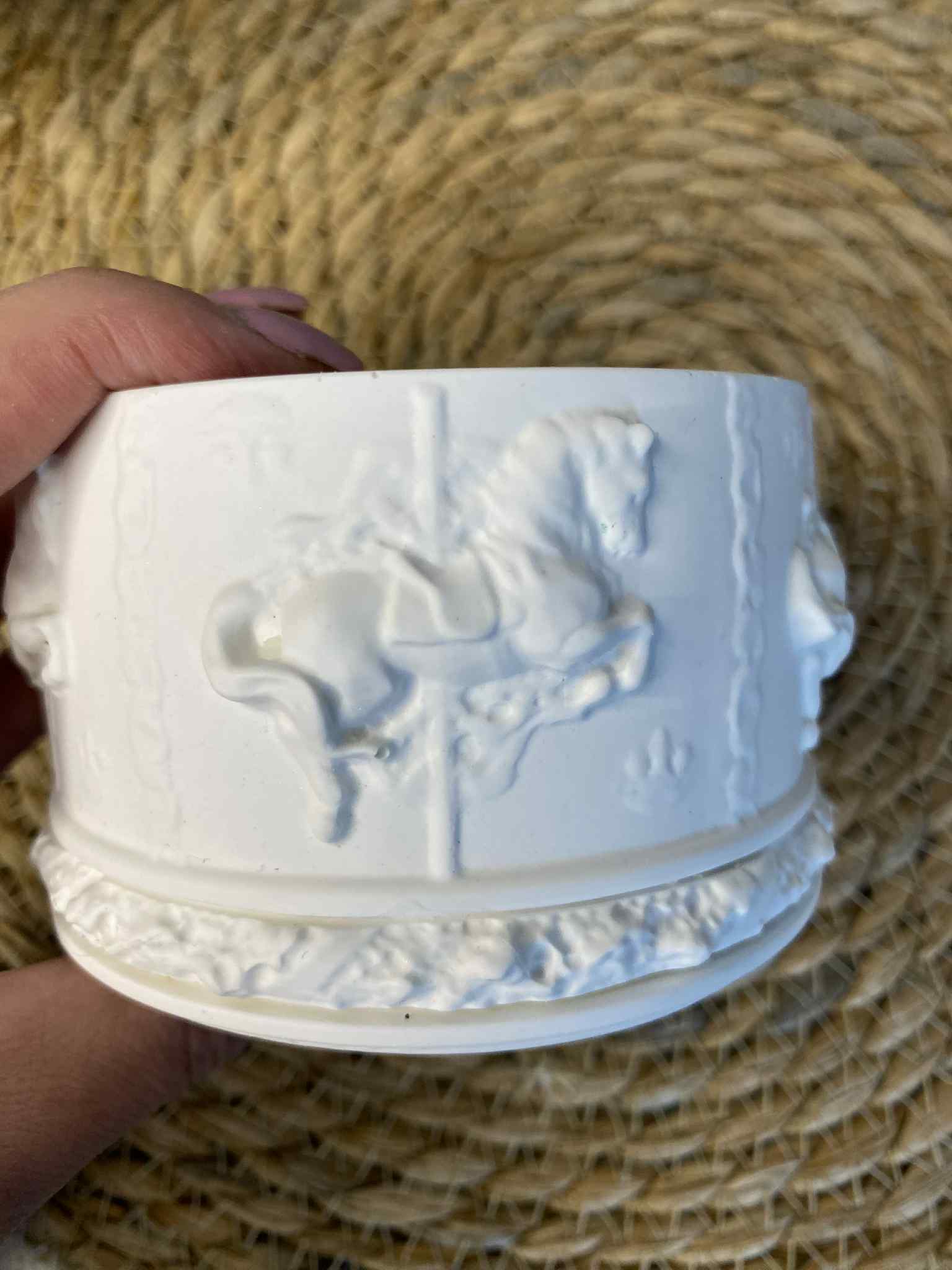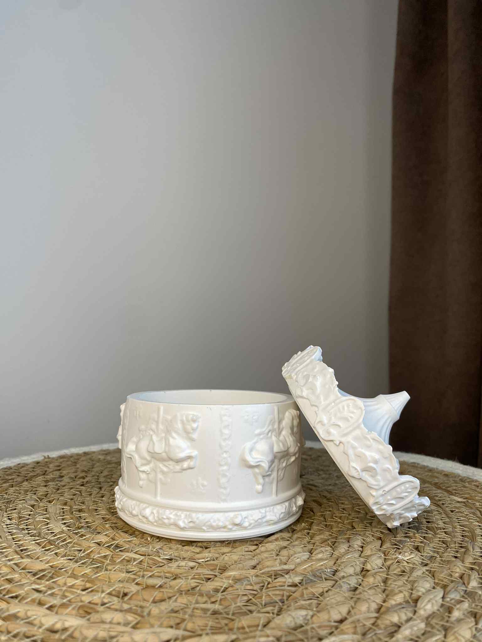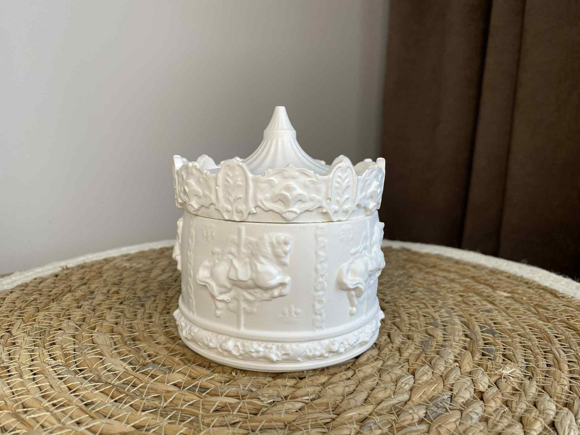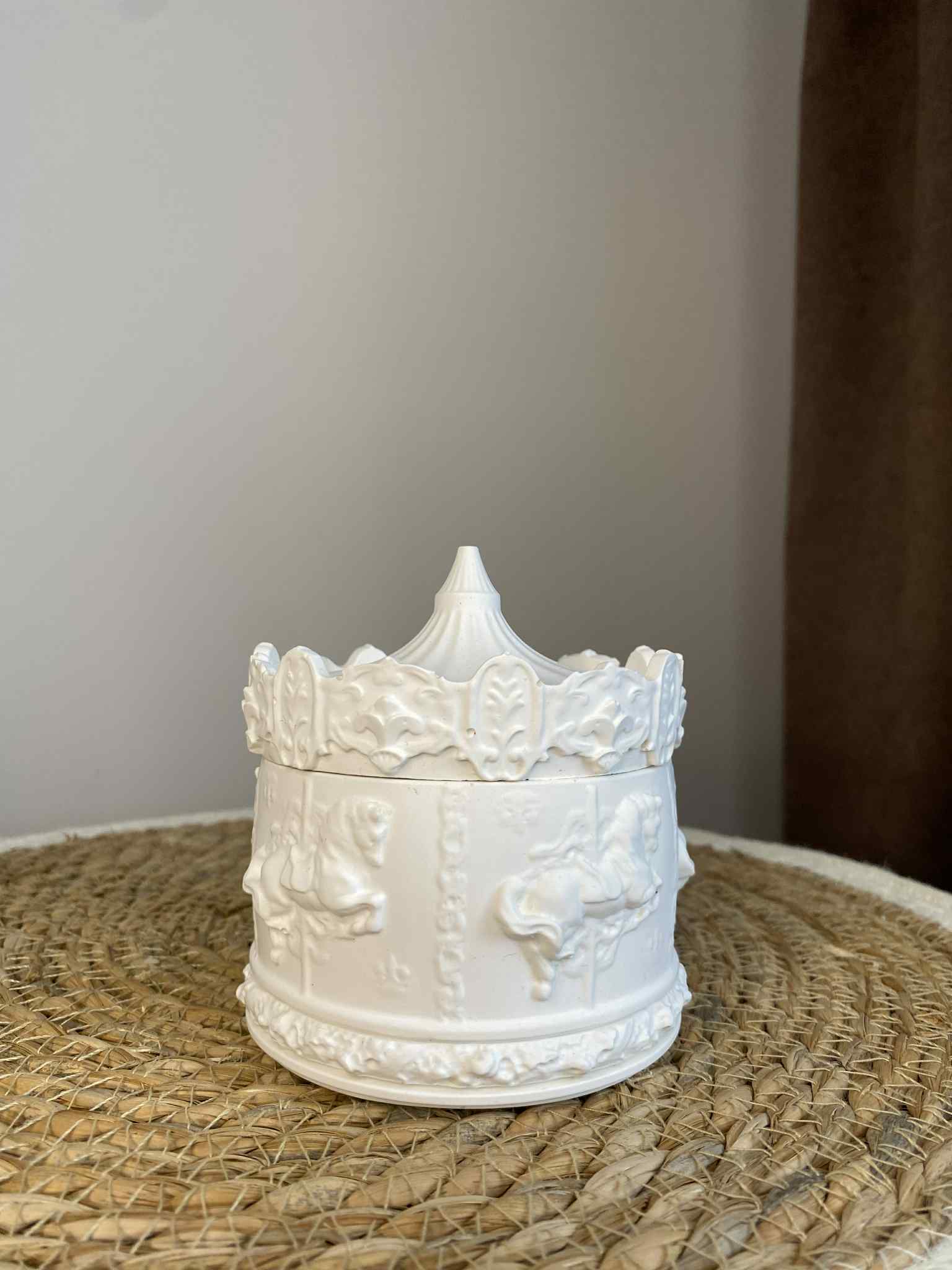 Žaisminga ir originali rankų darbo dėžutė, sukurta pagal karuselės motyvą. Pagaminta iš ekologiško jesmonito, ji išsiskiria savo tvirtumu, elegantiška forma bei unikaliu dizainu. Tai ne tik praktiška vieta smulkiems daiktams laikyti, bet ir išskirtinė interjero detalė.