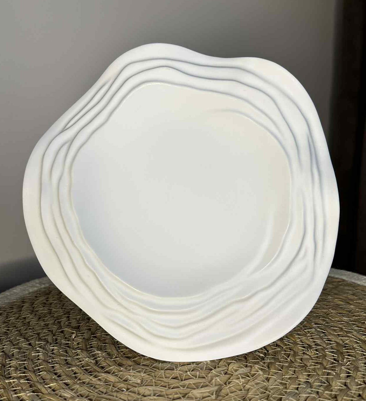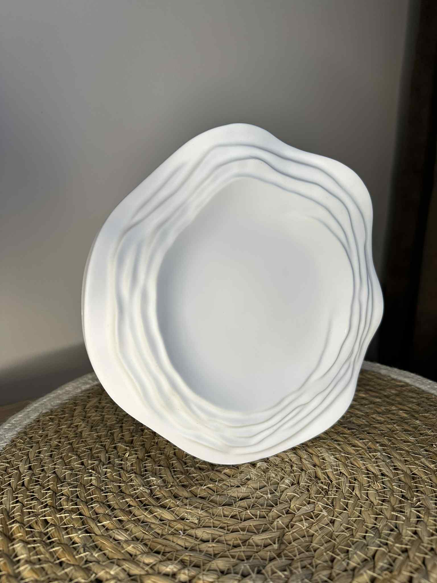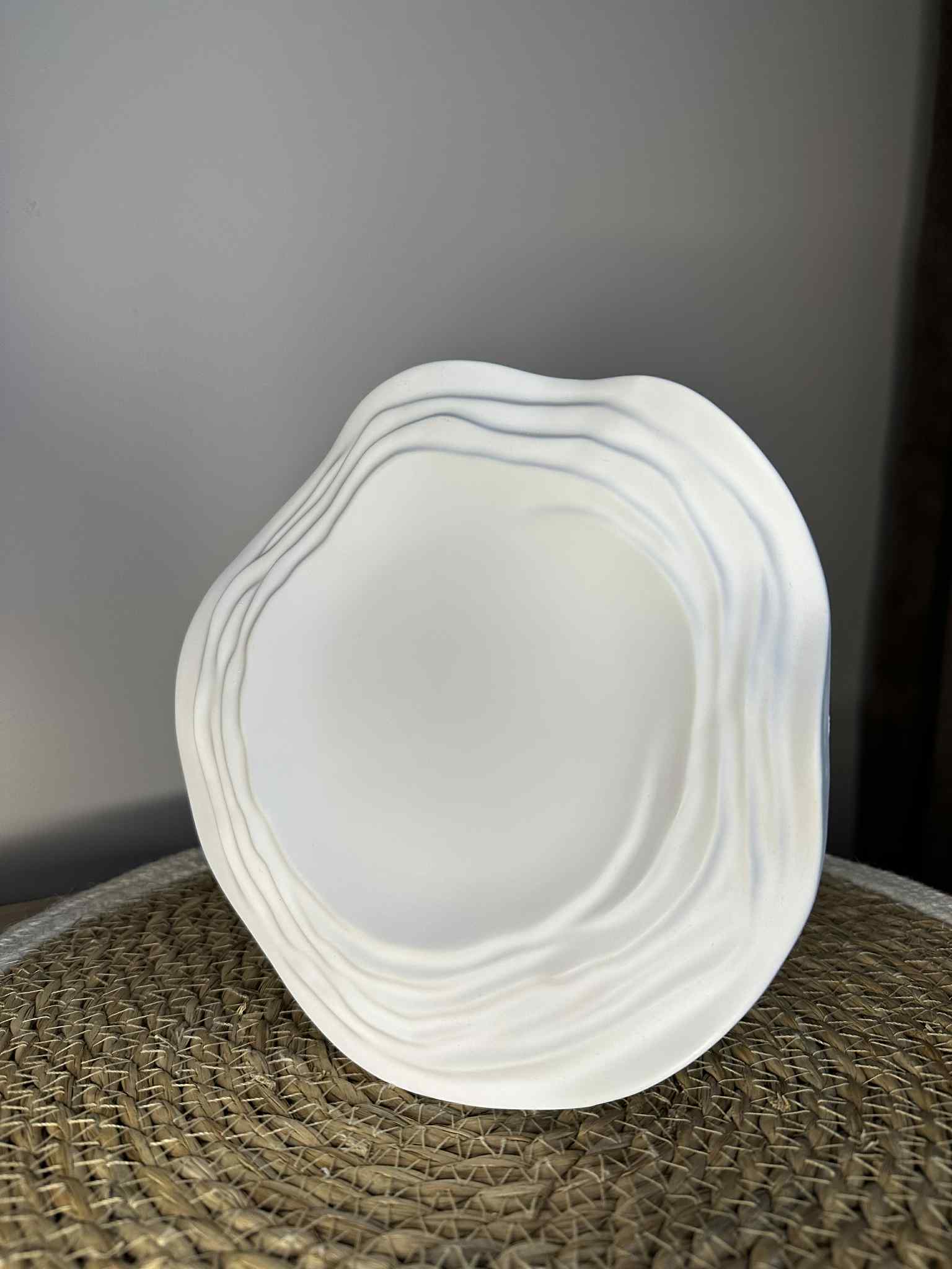 Pagamintas iš tvarios ir ilgaamžės jesmonito medžiagos, šis padėkliukas išsiskiria švelniomis bangelėmis, kurios suteikia jam žaismingo, bet minimalistinio charakterio. Tvirtas, tačiau lengvas, jis puikiai tinka tiek kaip dekoratyvus akcentas, tiek kaip funkcionalus paviršius daiktams laikyti.