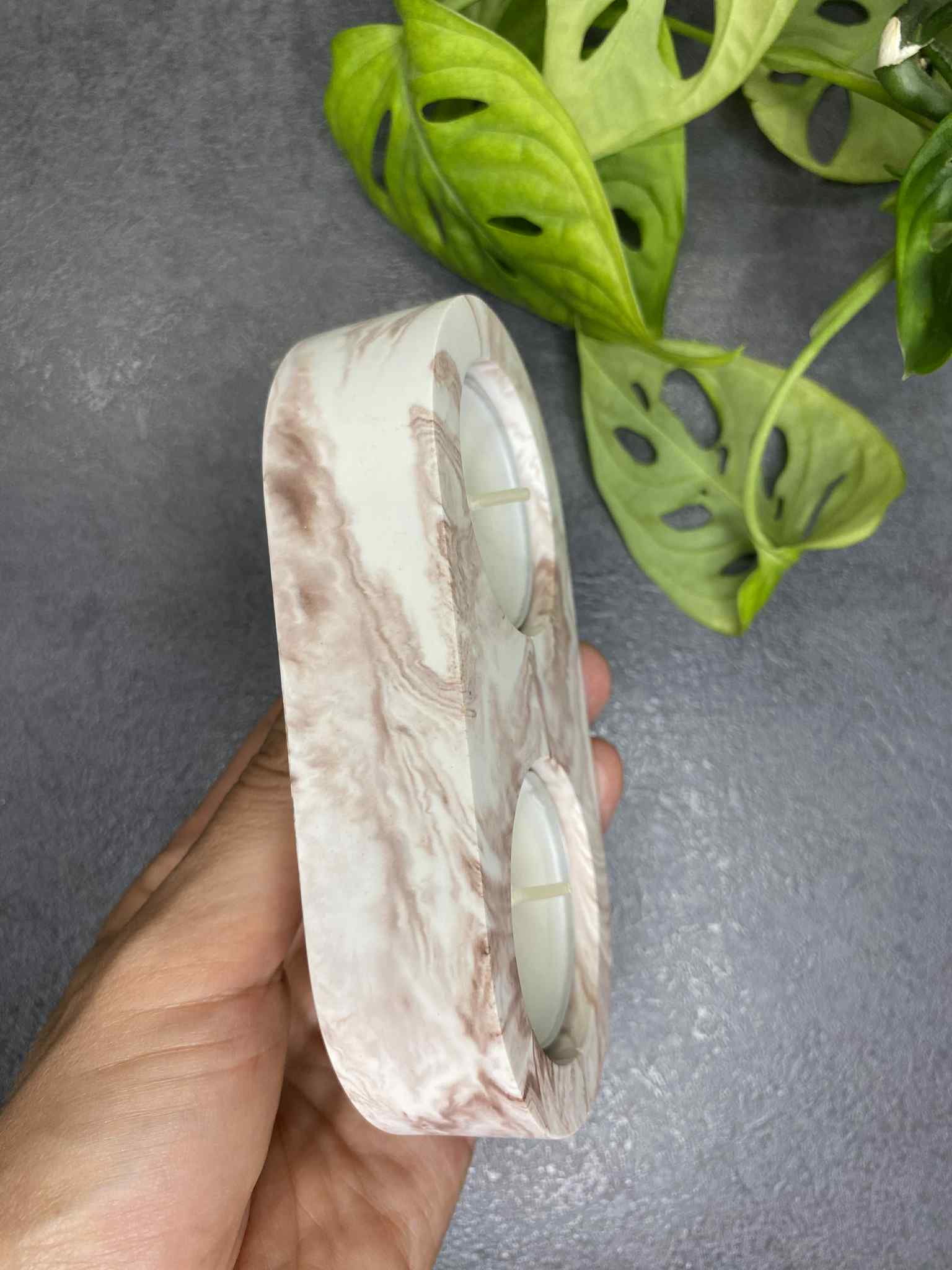 This unique handmade candle holder, made of durable and aesthetic jesmonite material, is a subtle yet expressive interior accent. Designed for a flat small candle (tealight type), this candle holder is perfect for creating everyday coziness or decorating a festive mood.