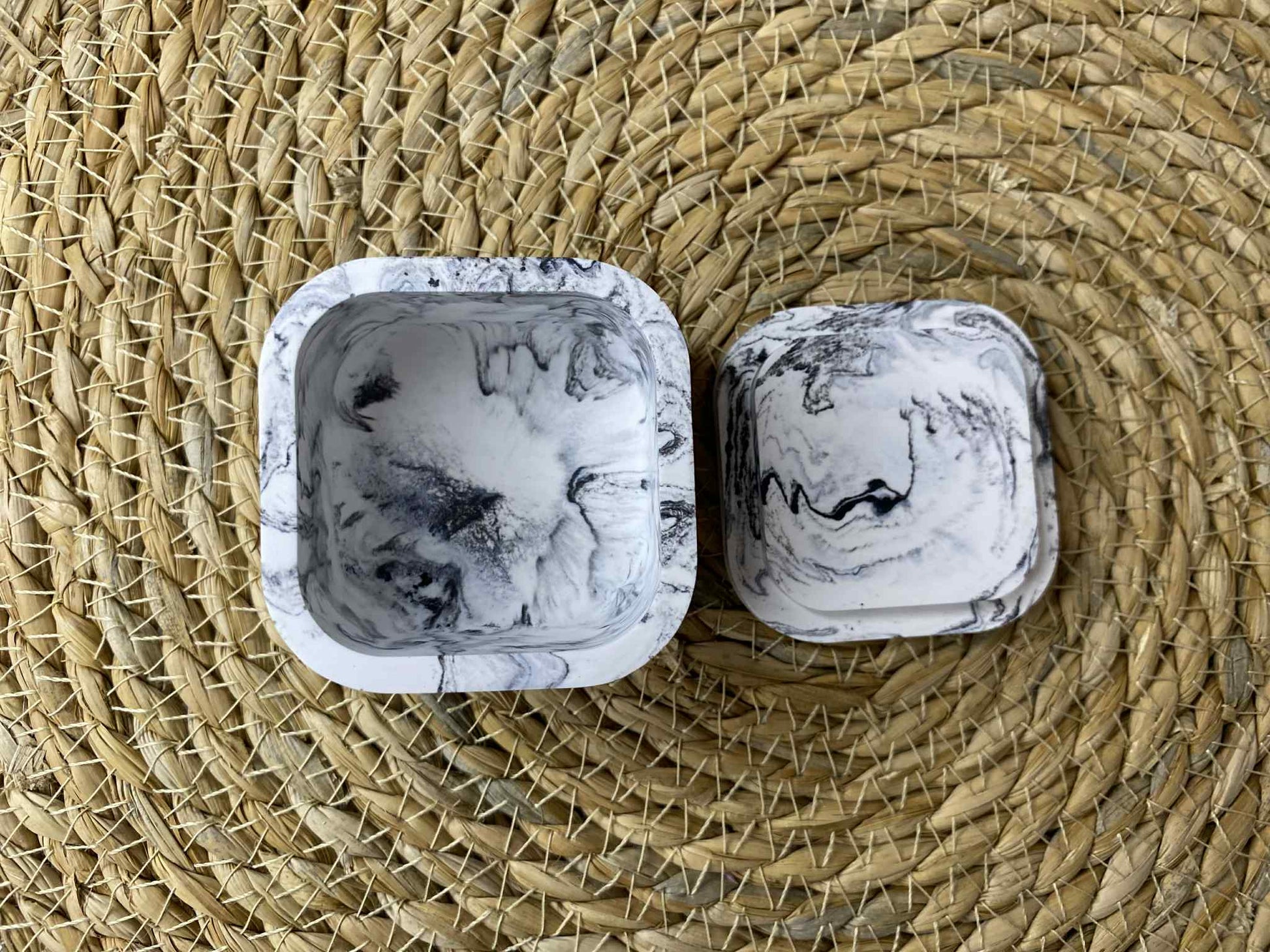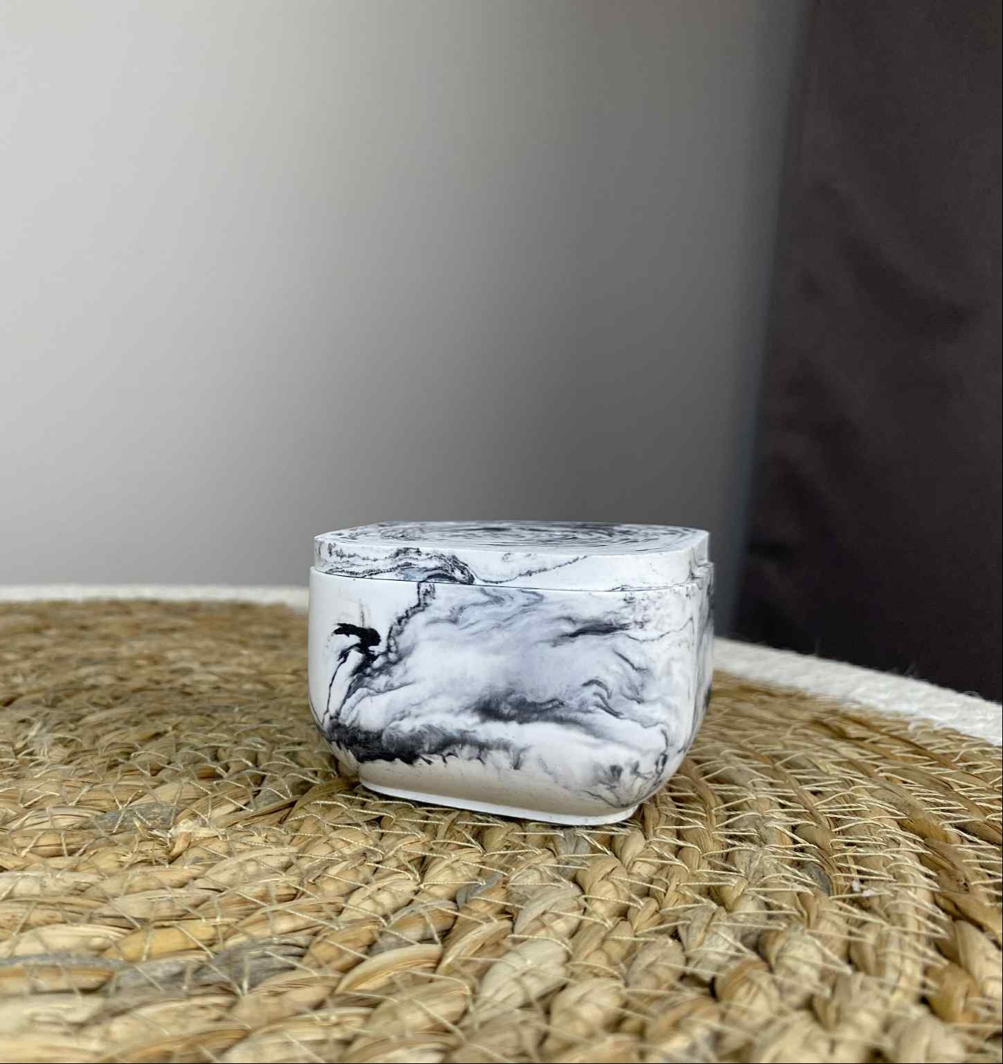 Subtili ir praktiška nedidelė dėžutė, kurios forma – kvadratas su švelniai užapvalintais kampais. Pagaminta iš patvarios ir aplinkai draugiškos medžiagos – jesmonito, ši dėžutė išsiskiria minimalistiniu, bet jaukiu dizainu.