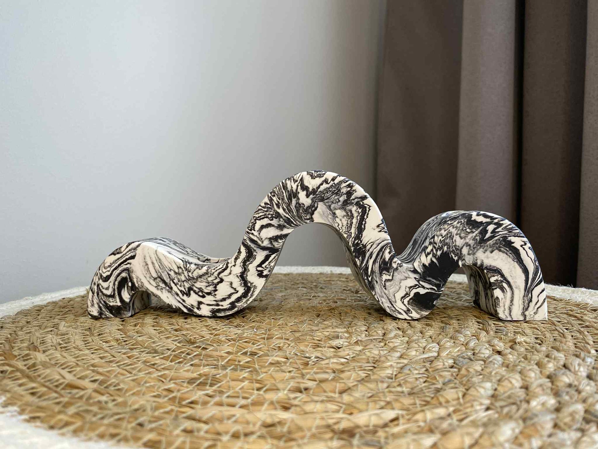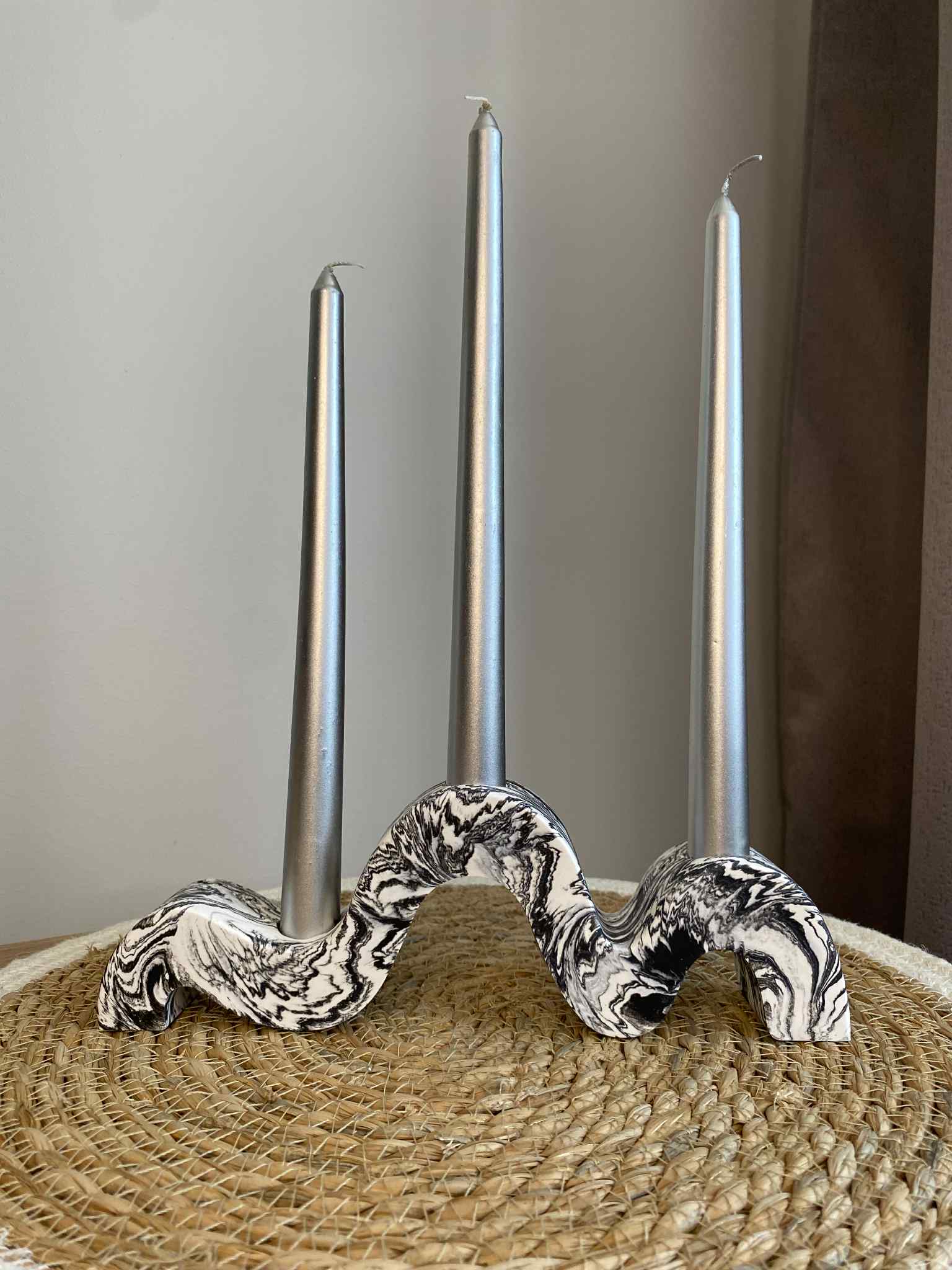 Išraiškingo dizaino žvakidė, sukurta ilgo tipo žvakėms. Pagaminta iš tvarios ir patvarios medžiagos – jesmonito, ji derina minimalistinę estetiką su subtilia forma. Lenktas siluetas suteikia gaminiui ypatingo lengvumo bei modernios elegancijos.
