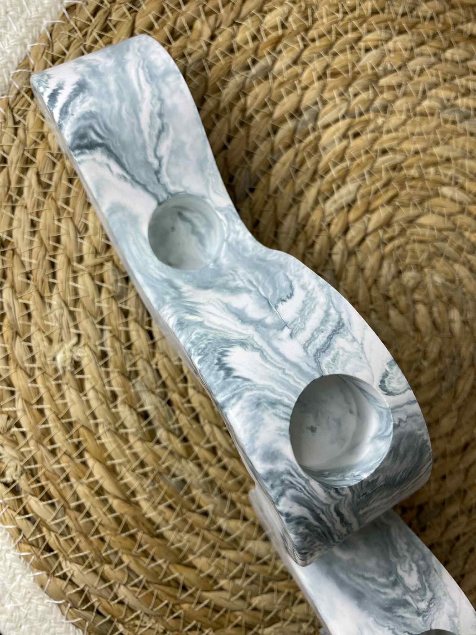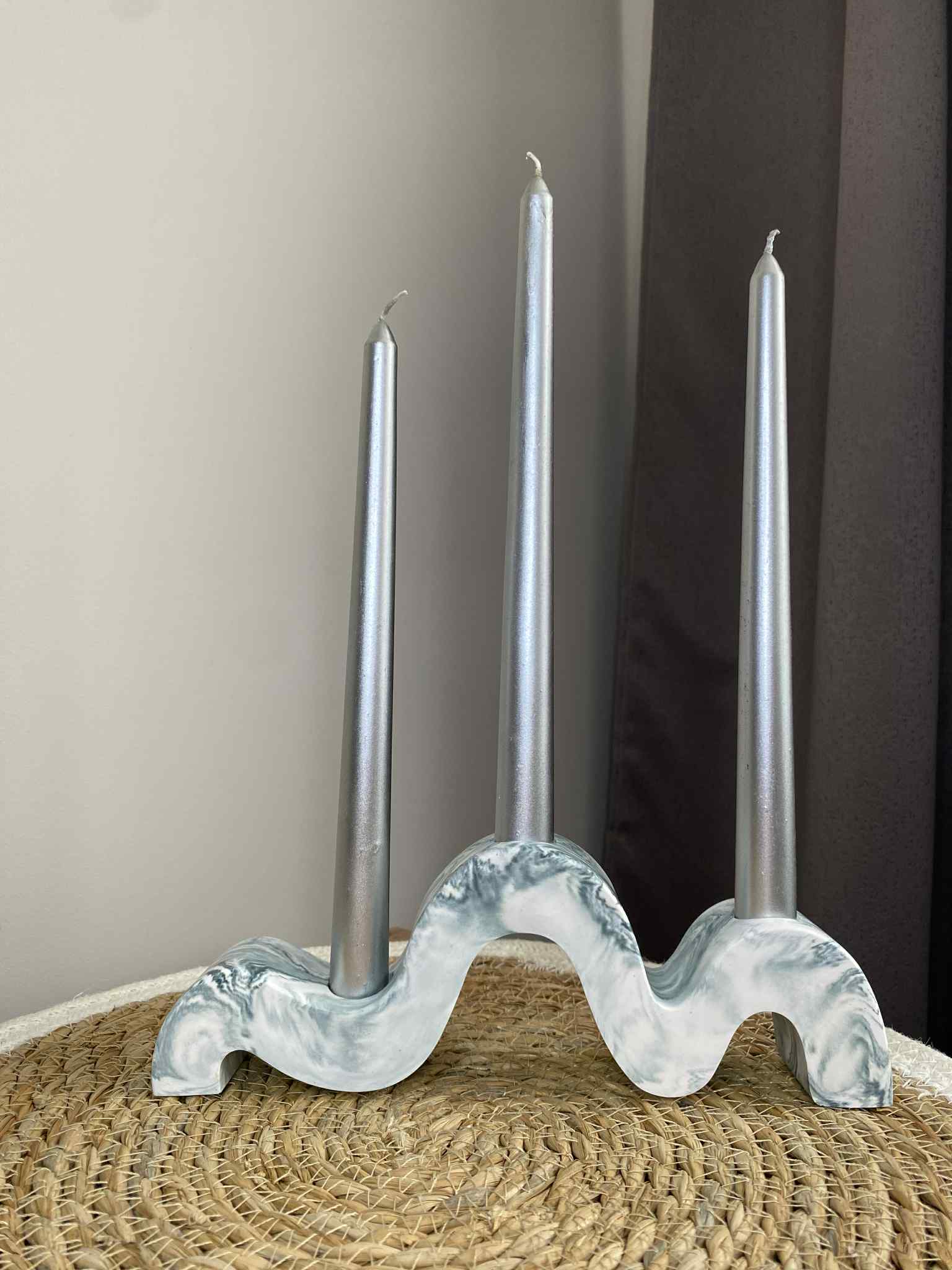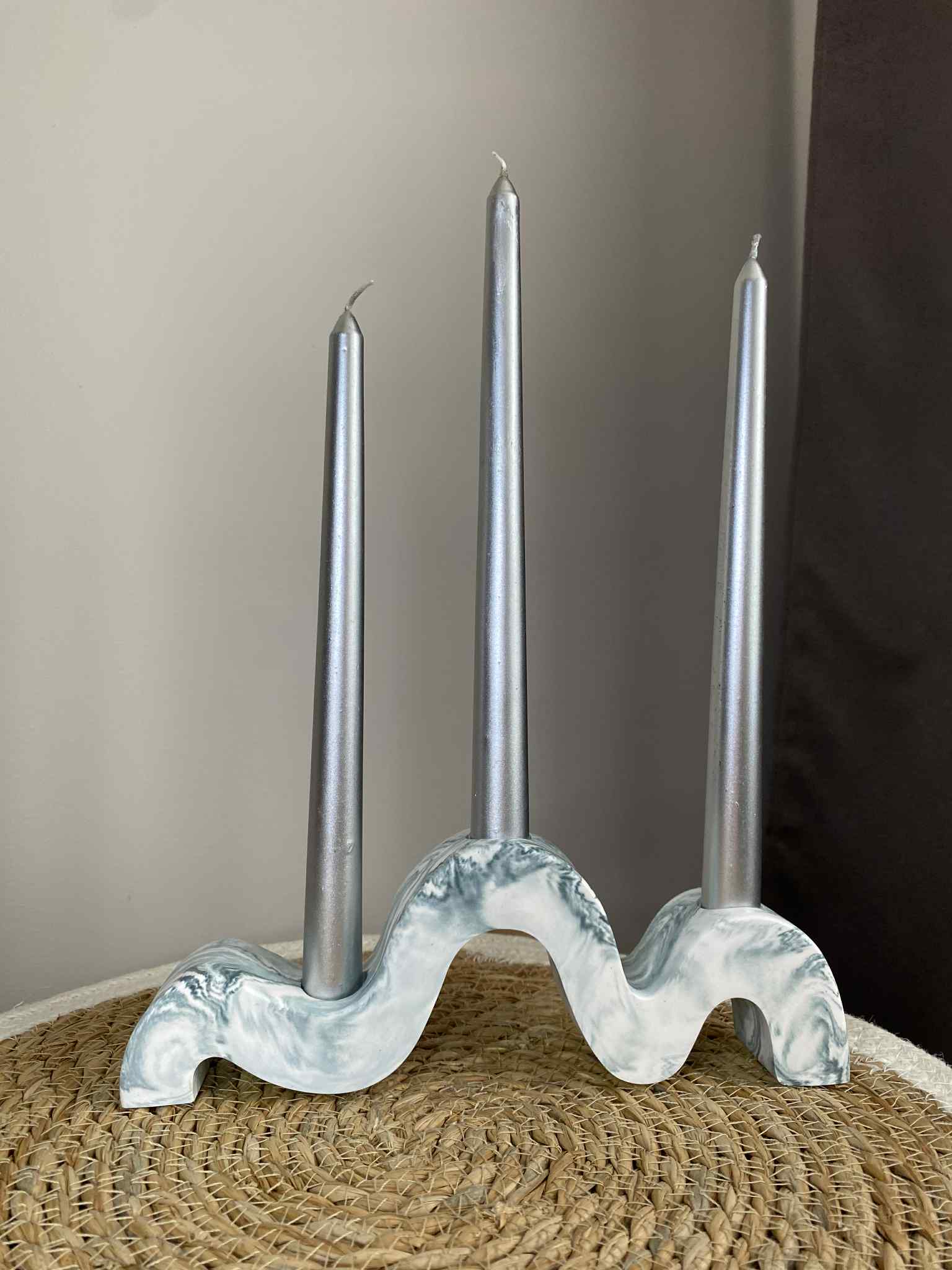 Išraiškingo dizaino žvakidė, sukurta ilgo tipo žvakėms. Pagaminta iš tvarios ir patvarios medžiagos – jesmonito, ji derina minimalistinę estetiką su subtilia forma. Lenktas siluetas suteikia gaminiui ypatingo lengvumo bei modernios elegancijos.