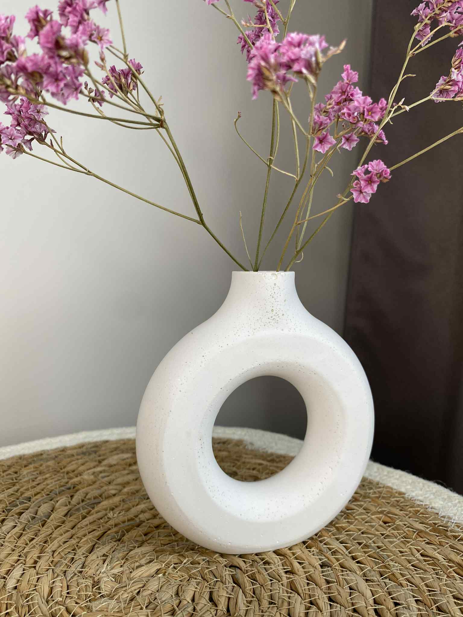 Moderni ir minimalistinė, tačiau itin išraiškinga ovalios formos vazelė su skyle viduryje. Pagaminta iš tvarios bei patvarios medžiagos – jesmonito, ši vazelė dvelkia subtilia elegancija ir tampa tikru interjero akcentu.