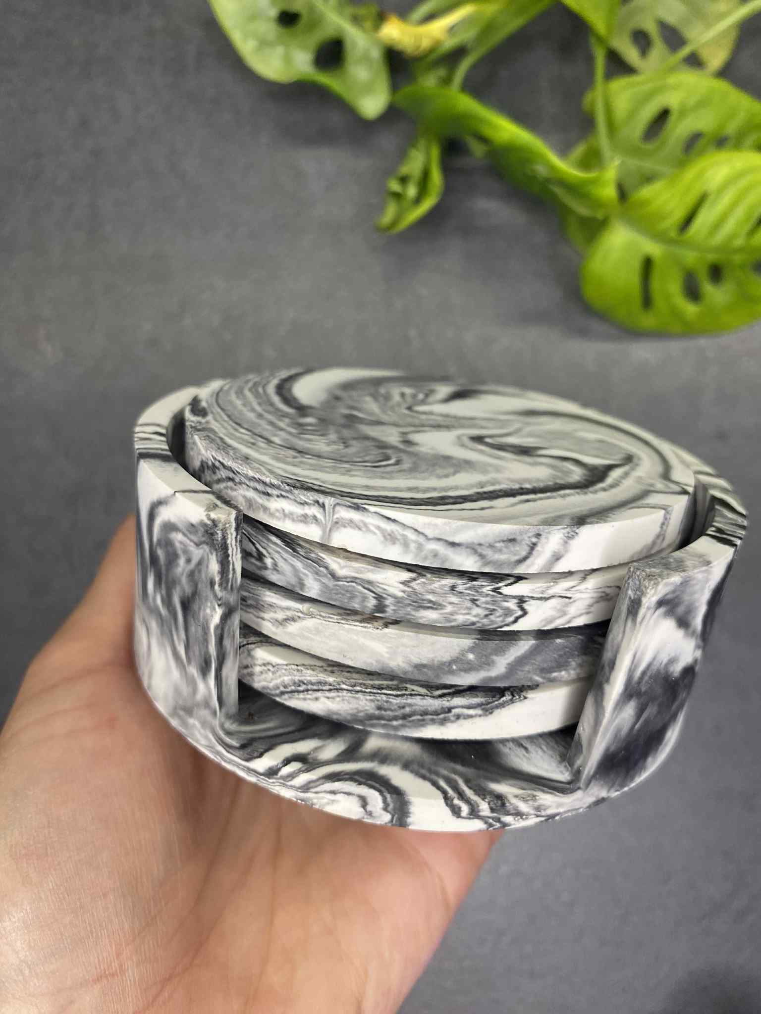 Handcrafted from sustainable and durable jesmonite material, these coasters not only protect your table from heat, moisture or scratches, but also become a subtle interior decoration. Each coaster is unique - due to the handwork and characteristics of the material, patterns and shades may vary slightly, so you get an exclusive one-of-a-kind product.