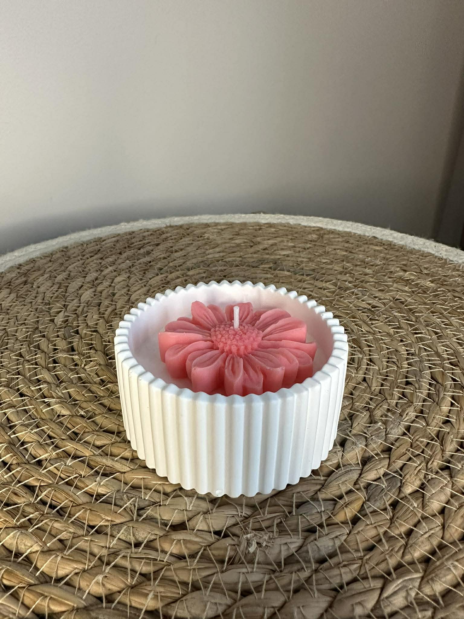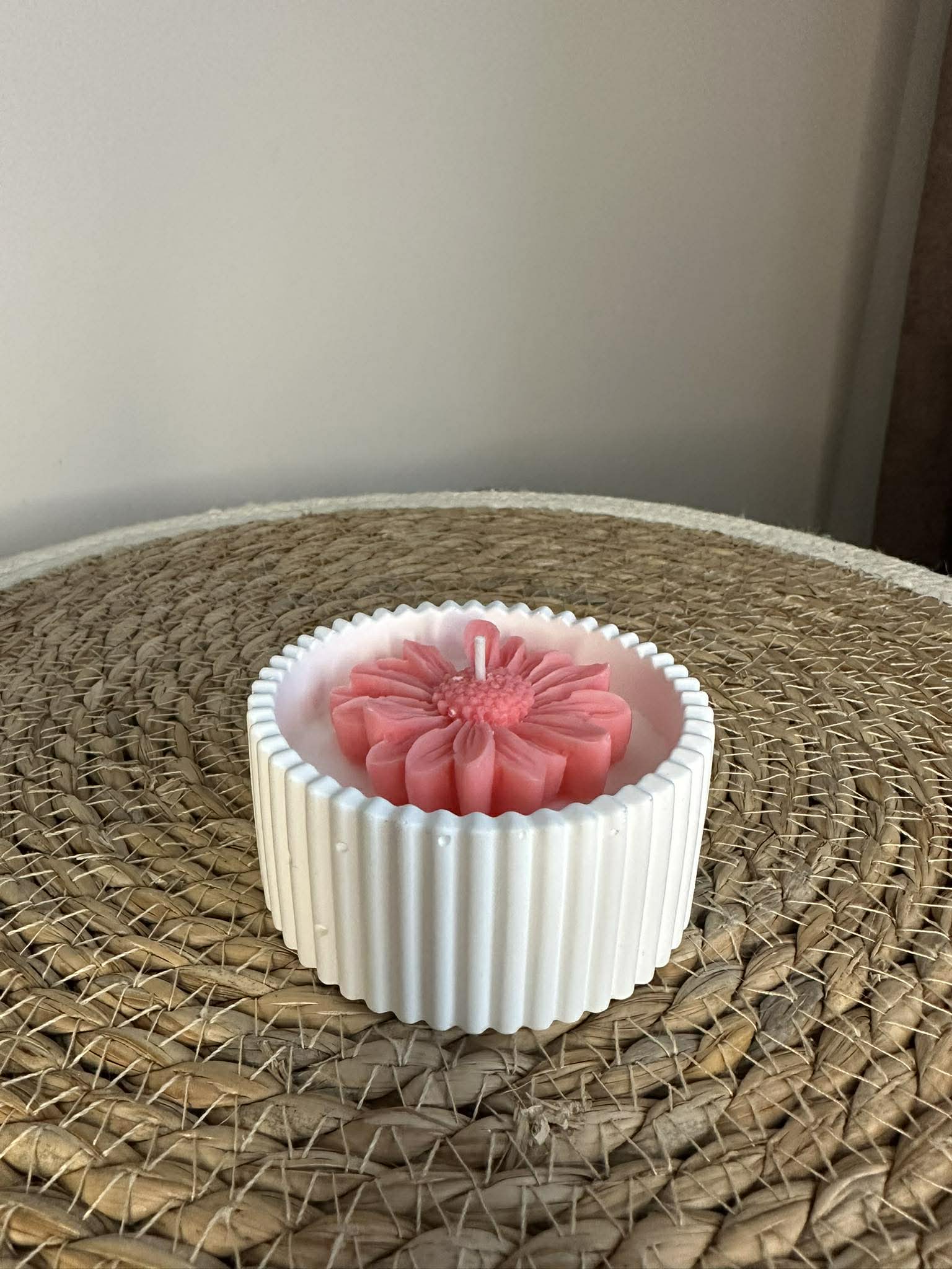 Išskirtinė rankų darbo žvakė, sukurta ne tik šviesai, bet ir estetiniam malonumui. Natūralaus sojų vaško žvakė išlieta į tvirtą jesmonito indelį ir papuošta dekoratyvine gėlės forma – tai subtilus interjero akcentas, kuris traukia žvilgsnį net ir neuždegtas.