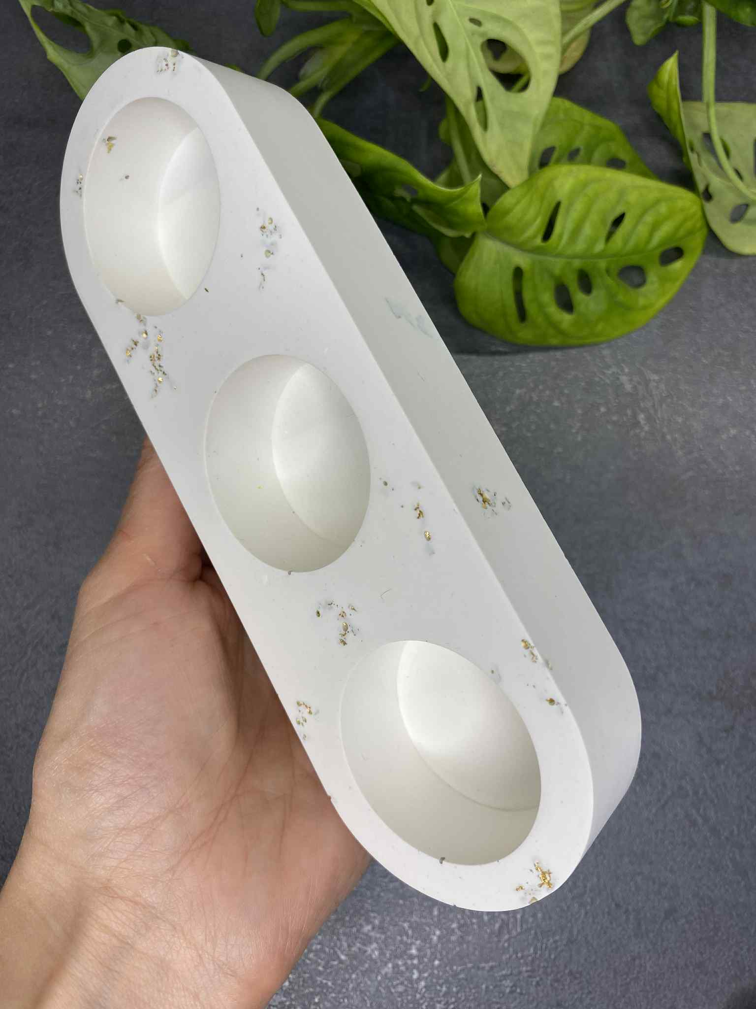 This unique handmade candle holder, made of durable and aesthetic jesmonite material, is a subtle yet expressive interior accent. Designed for a flat small candle (tealight type), this candle holder is perfect for creating everyday coziness or decorating a festive mood.