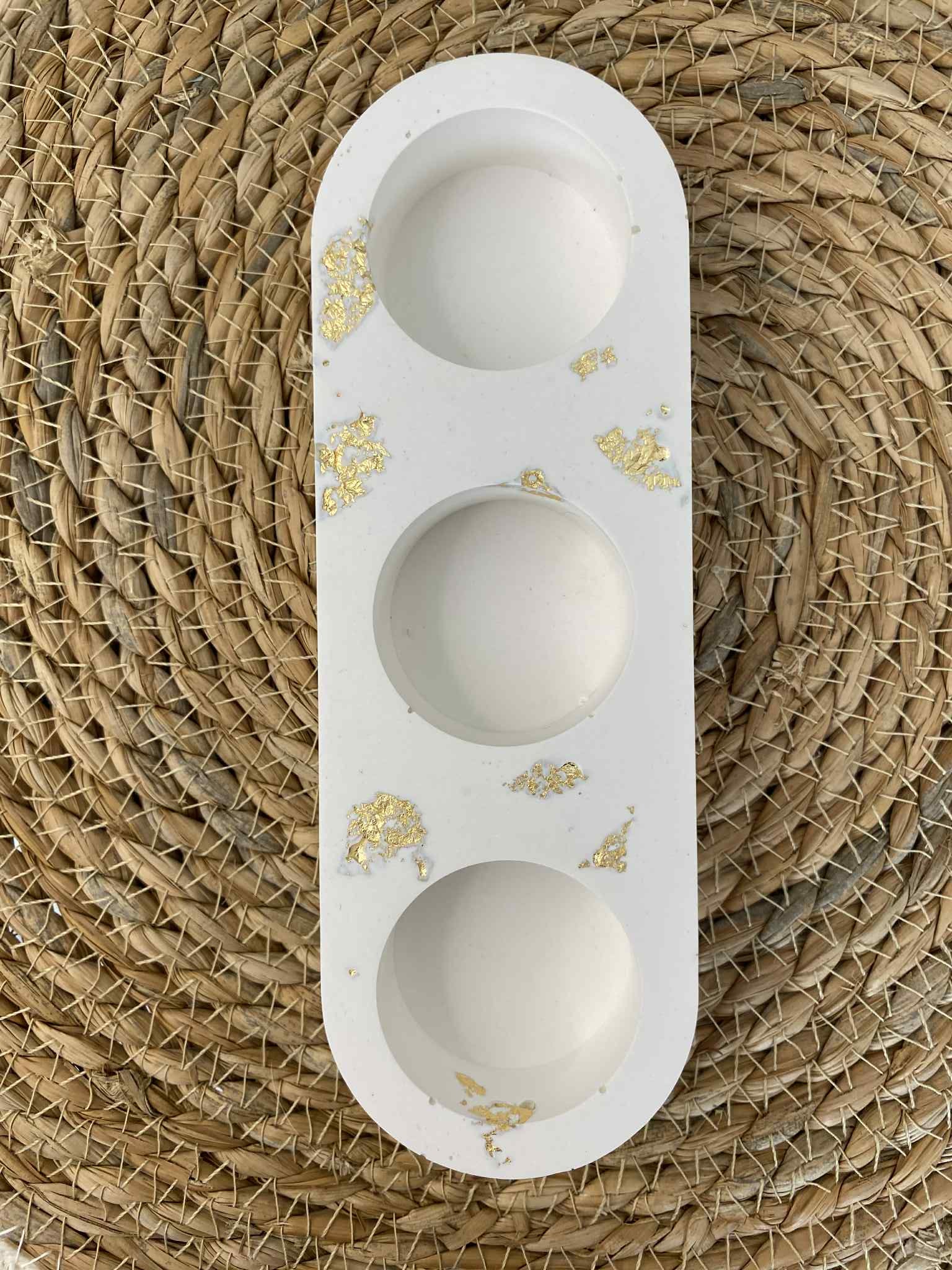 Ši unikali rankų darbo žvakidė, pagaminta iš tvirtos ir estetiškos jesmonito medžiagos, yra subtilus, bet išraiškingas interjero akcentas. Skirta plokščiai nedidelei žvakei (tealight tipo), ši žvakidė puikiai tiks tiek kasdieniam jaukumui kurti, tiek šventinei nuotaikai papuošti.