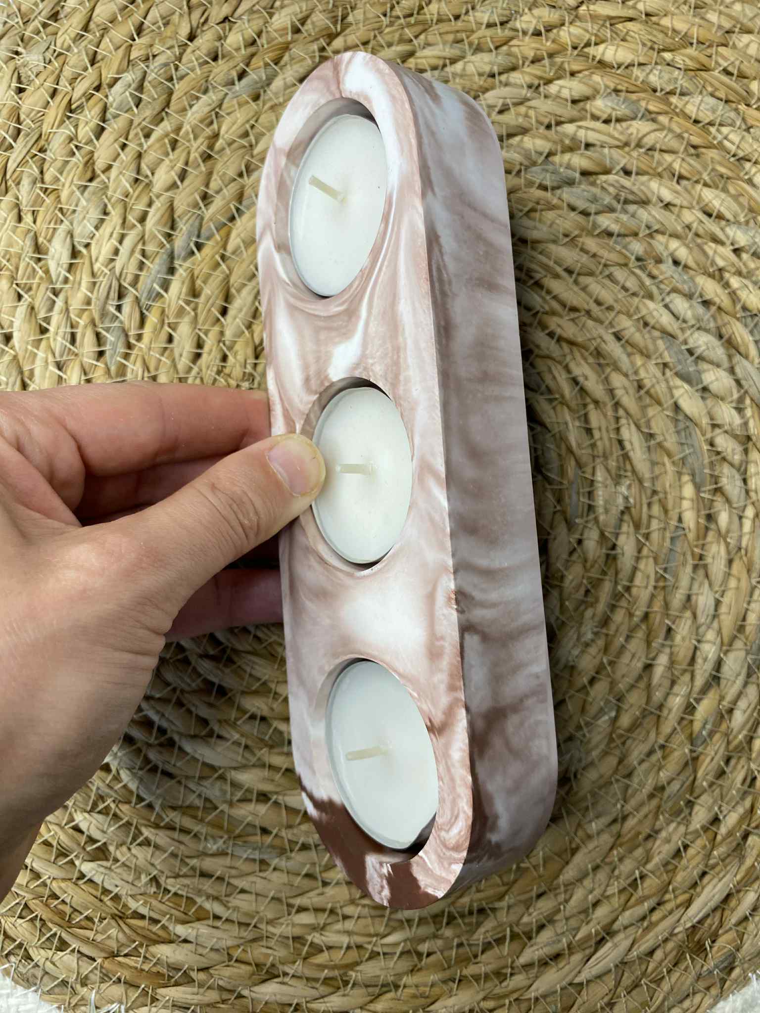 This unique handmade candle holder, made of durable and aesthetic jesmonite material, is a subtle but expressive interior accent. Designed for a flat small candle (tealight type), this candle holder is perfect for creating everyday coziness or decorating a festive mood.