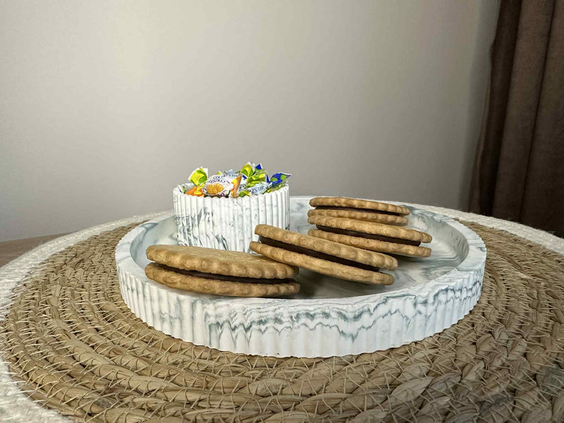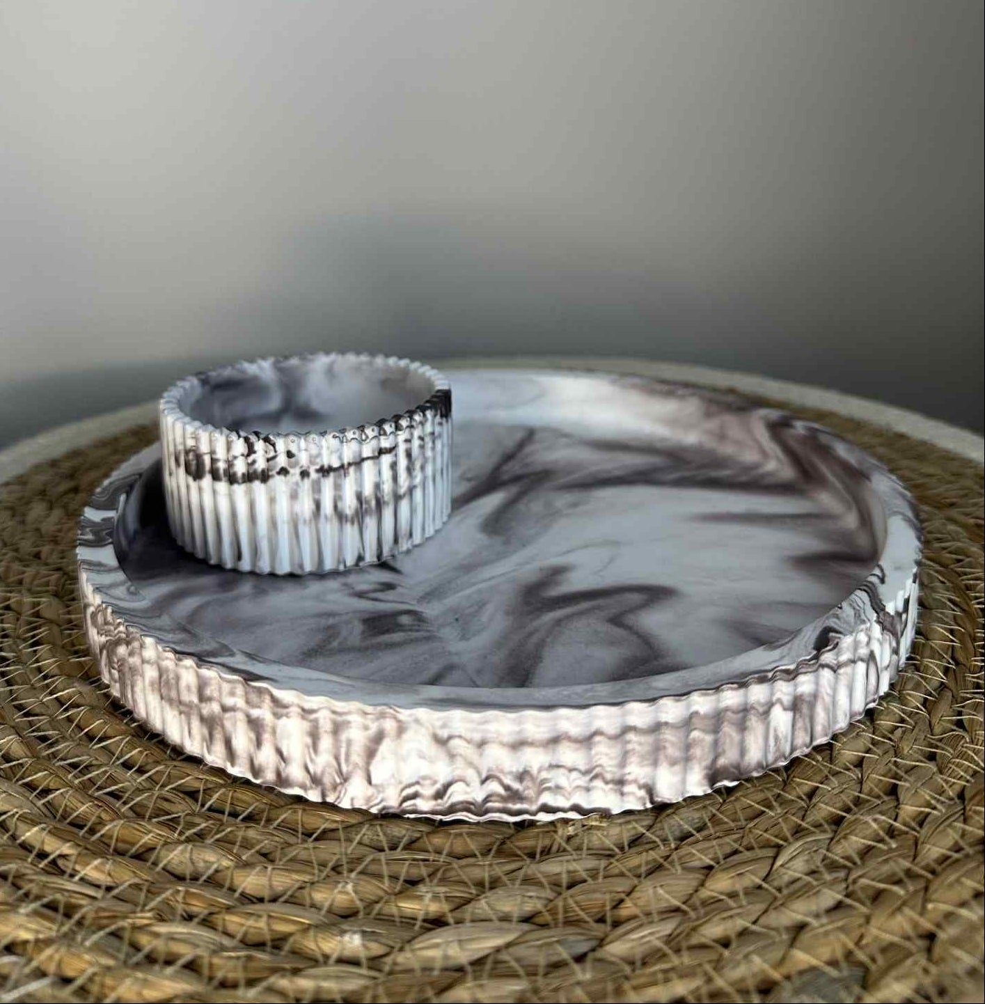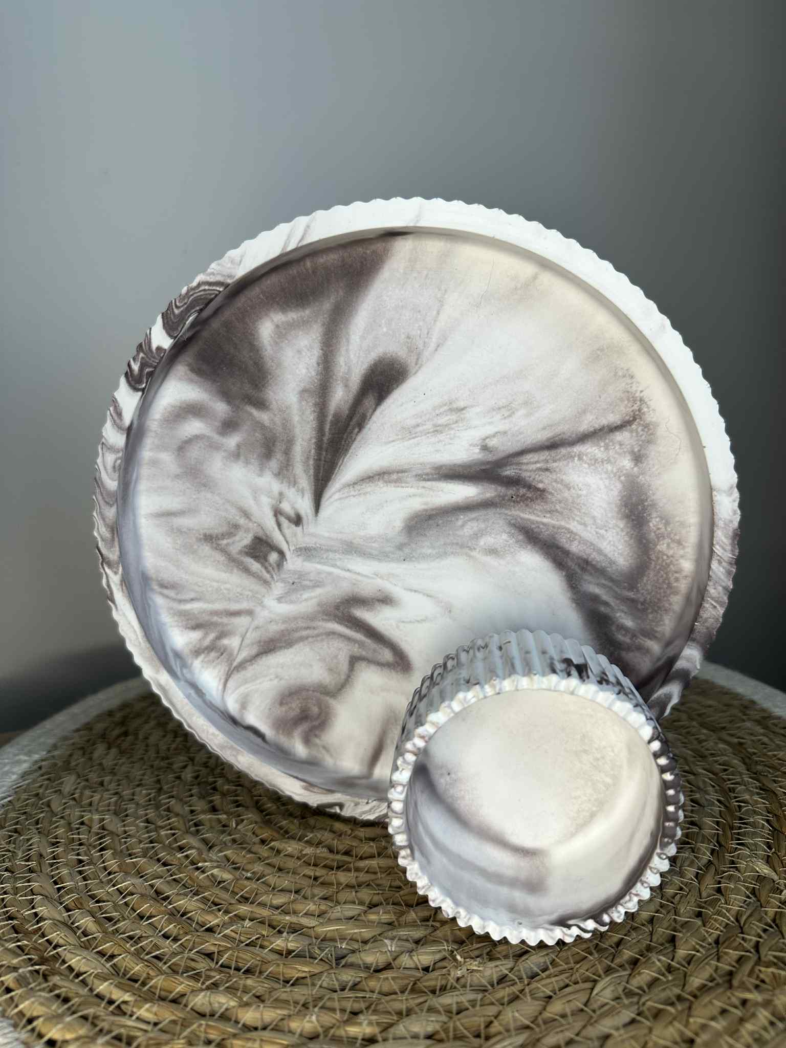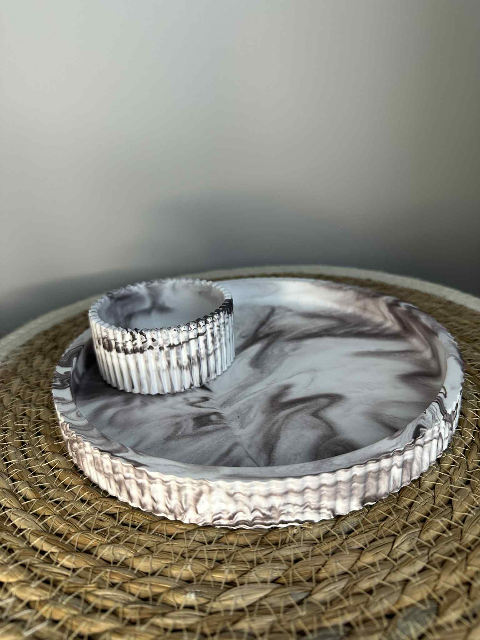Išskirtinio dizaino rankų darbo jesmonito gaminys, pasižymintis subtiliu marmuro raštu ir moderniai banguotomis kraštinėmis. Šis padėklas sujungia minimalistinį stilių ir funkcionalumą – kiekviena detalė apgalvota taip, kad taptų ne tik praktišku, bet ir estetišku jūsų namų akcentu.
