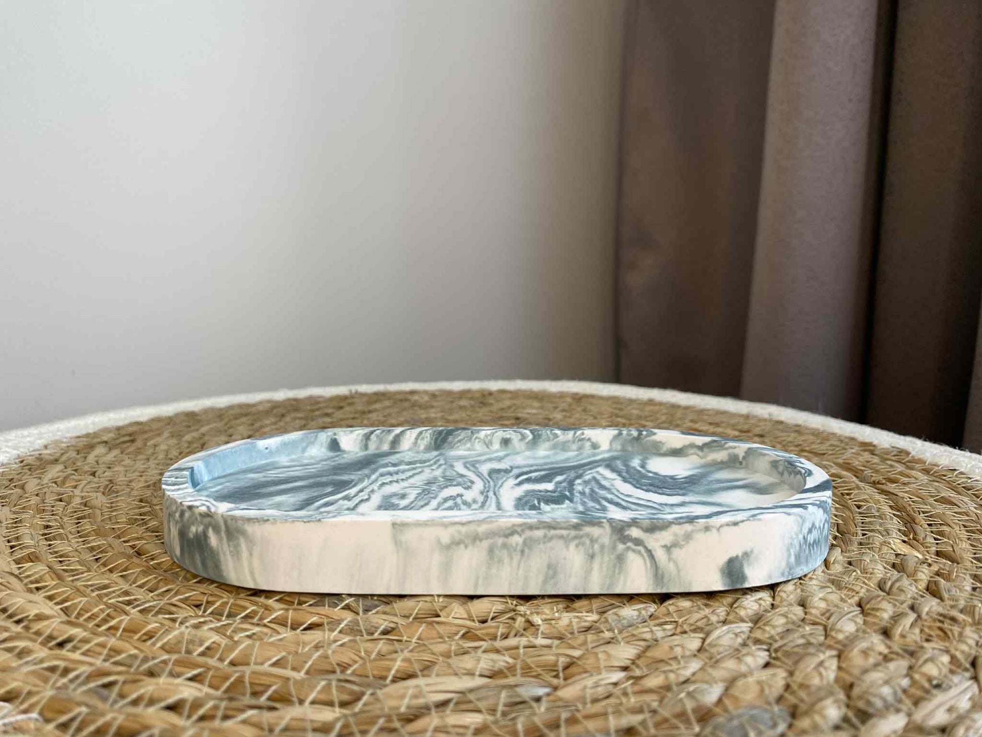 Pagamintas iš tvarios ir ilgaamžės jesmonito medžiagos, šis padėkliukas pasižymi unikaliu dizainu bei kiekvieno gaminio išskirtinumu – nėra dviejų visiškai vienodų! Tvirtas, tačiau lengvas, jis puikiai tiks tiek kaip dekoratyvus akcentas, tiek ir kaip funkcionalus paviršius daiktams laikyti.