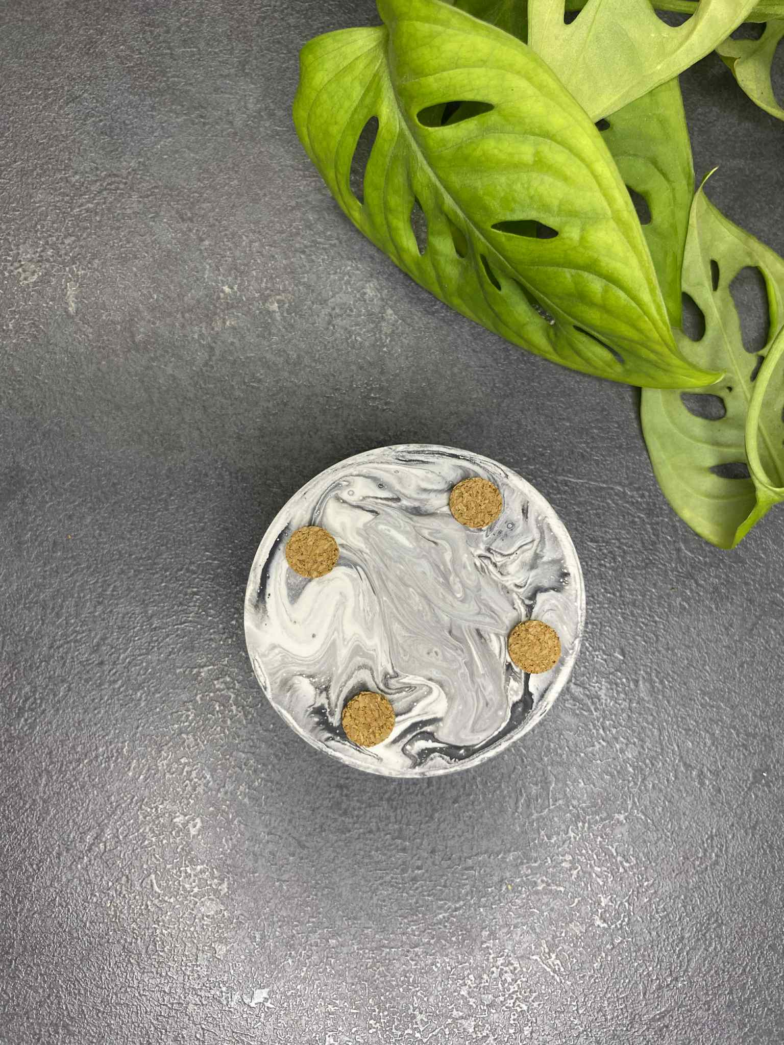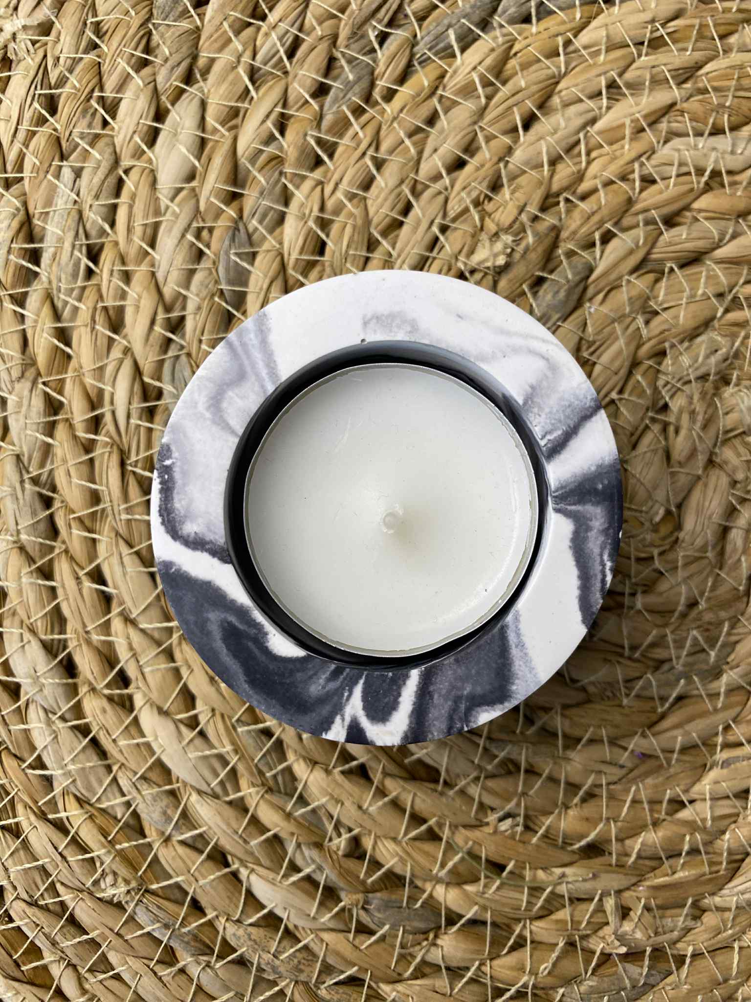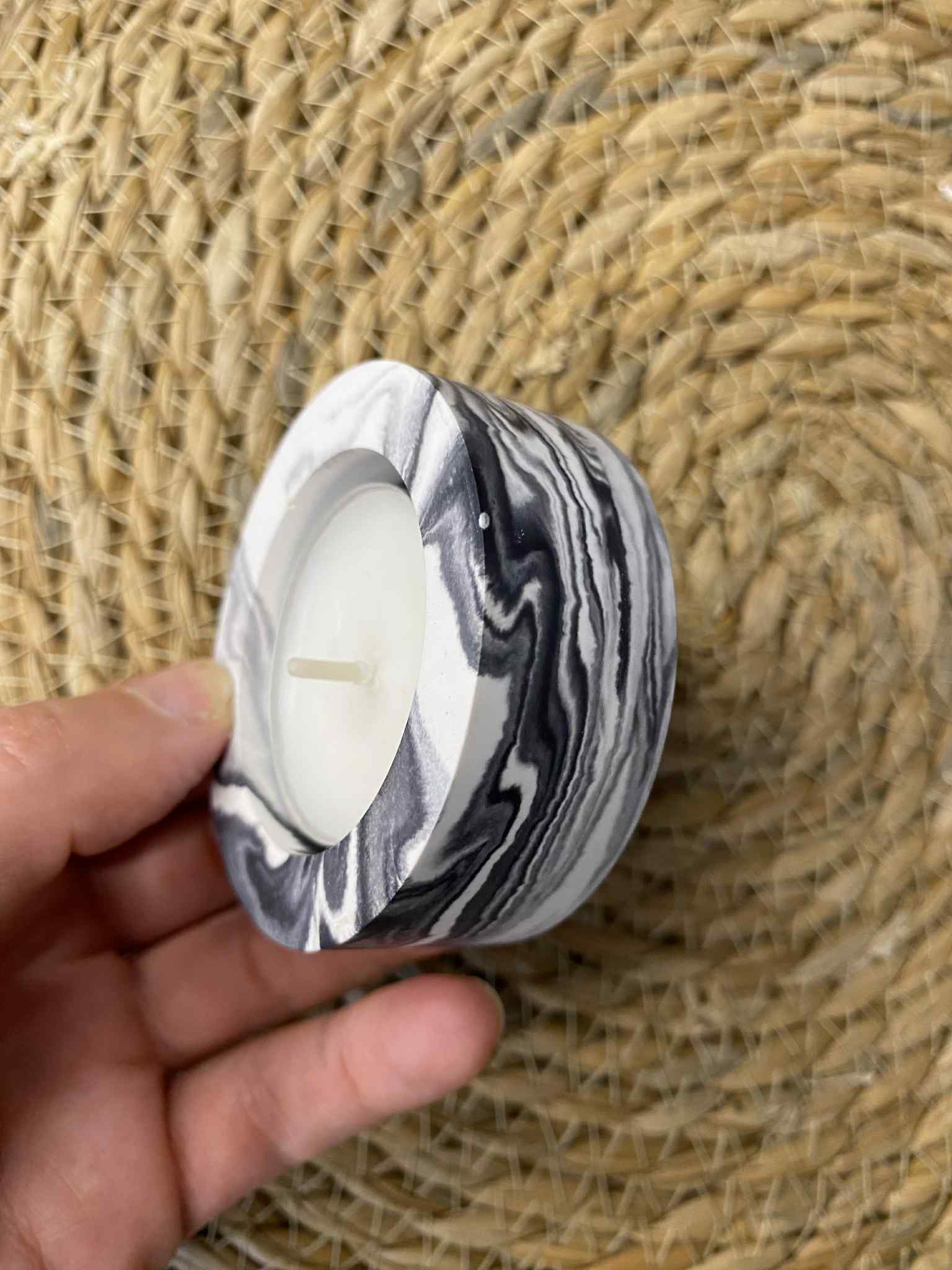 This unique handmade candle holder, made of durable and aesthetic jesmonite material, is a subtle yet expressive interior accent. Designed for a flat small candle (tealight type), this candle holder is perfect for creating everyday coziness or decorating a festive mood.