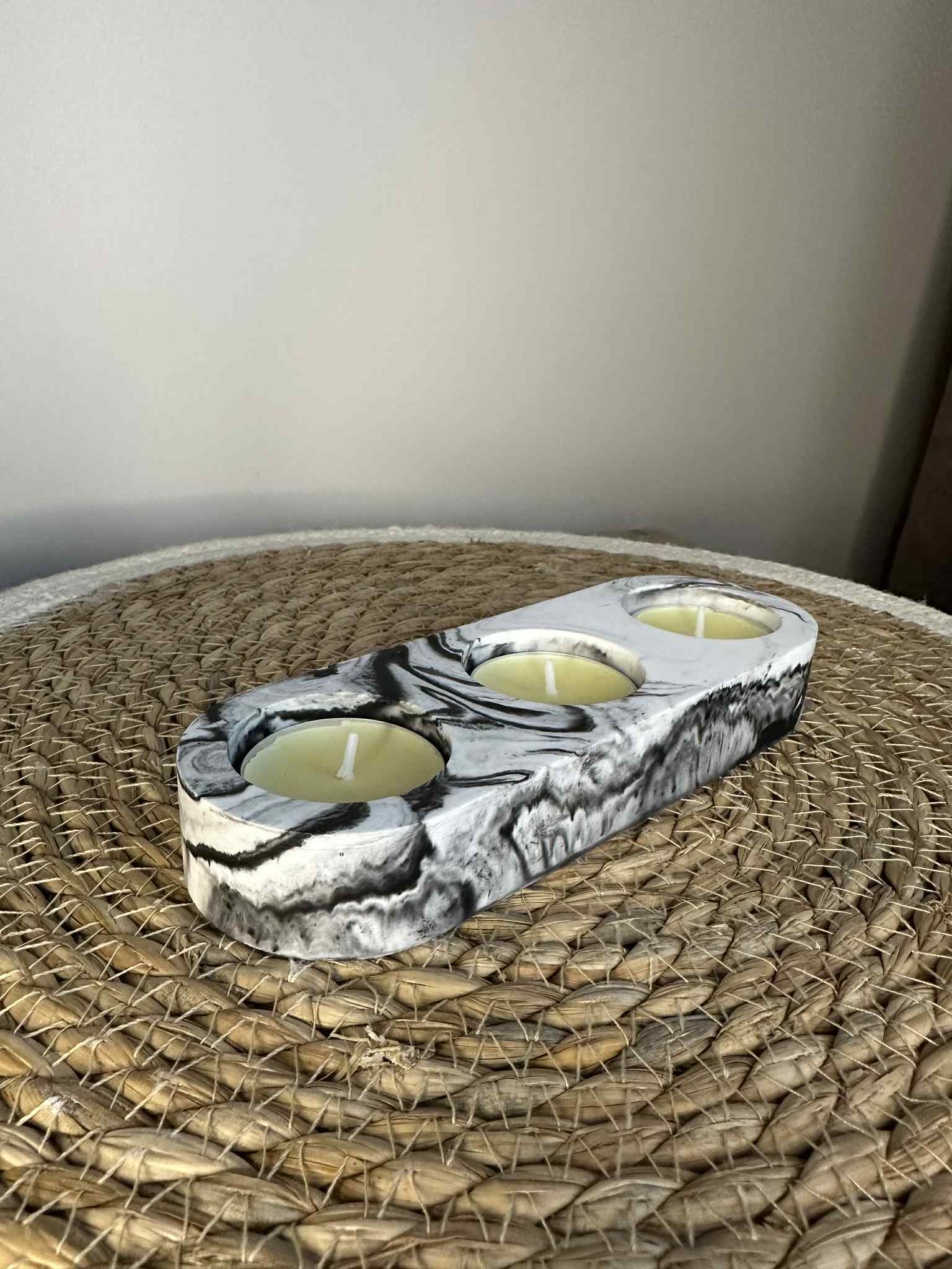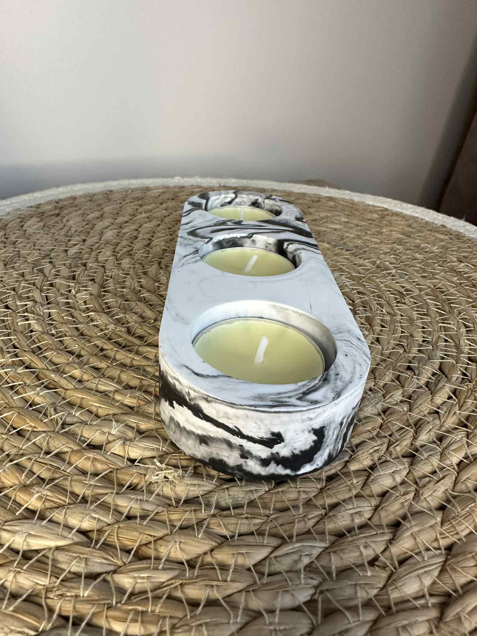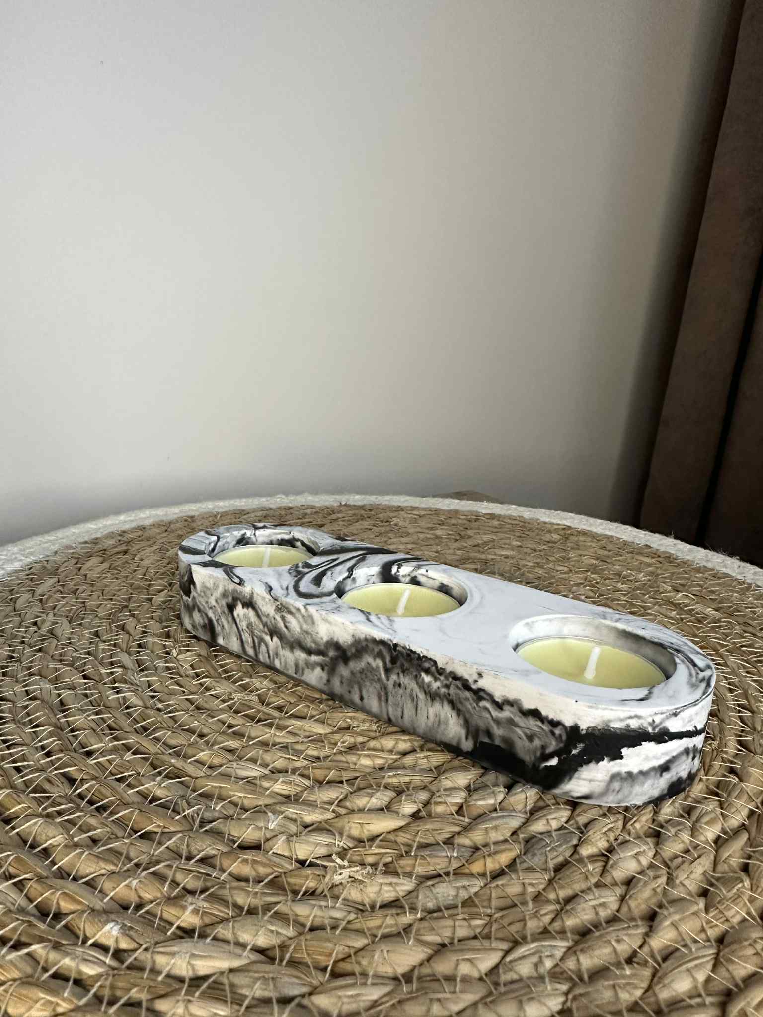 Ši unikali rankų darbo žvakidė, pagaminta iš tvirtos ir estetiškos jesmonito medžiagos, yra subtilus, bet išraiškingas interjero akcentas. Skirta plokščiai nedidelei žvakei (tealight tipo), ši žvakidė puikiai tiks tiek kasdieniam jaukumui kurti, tiek šventinei nuotaikai papuošti.