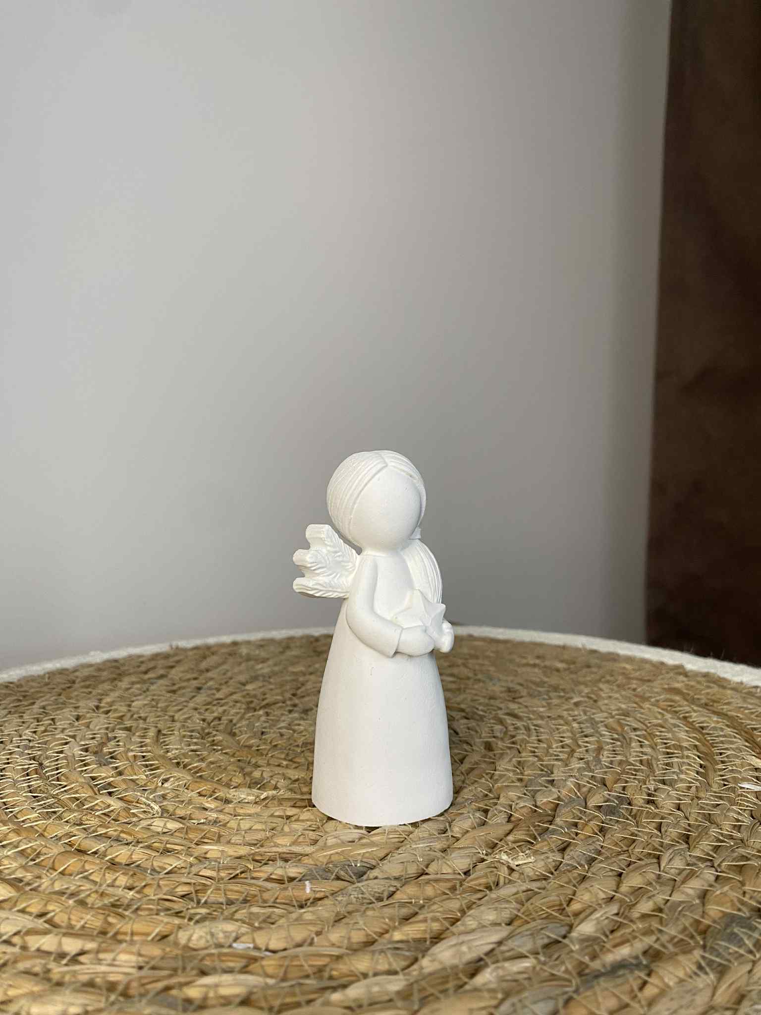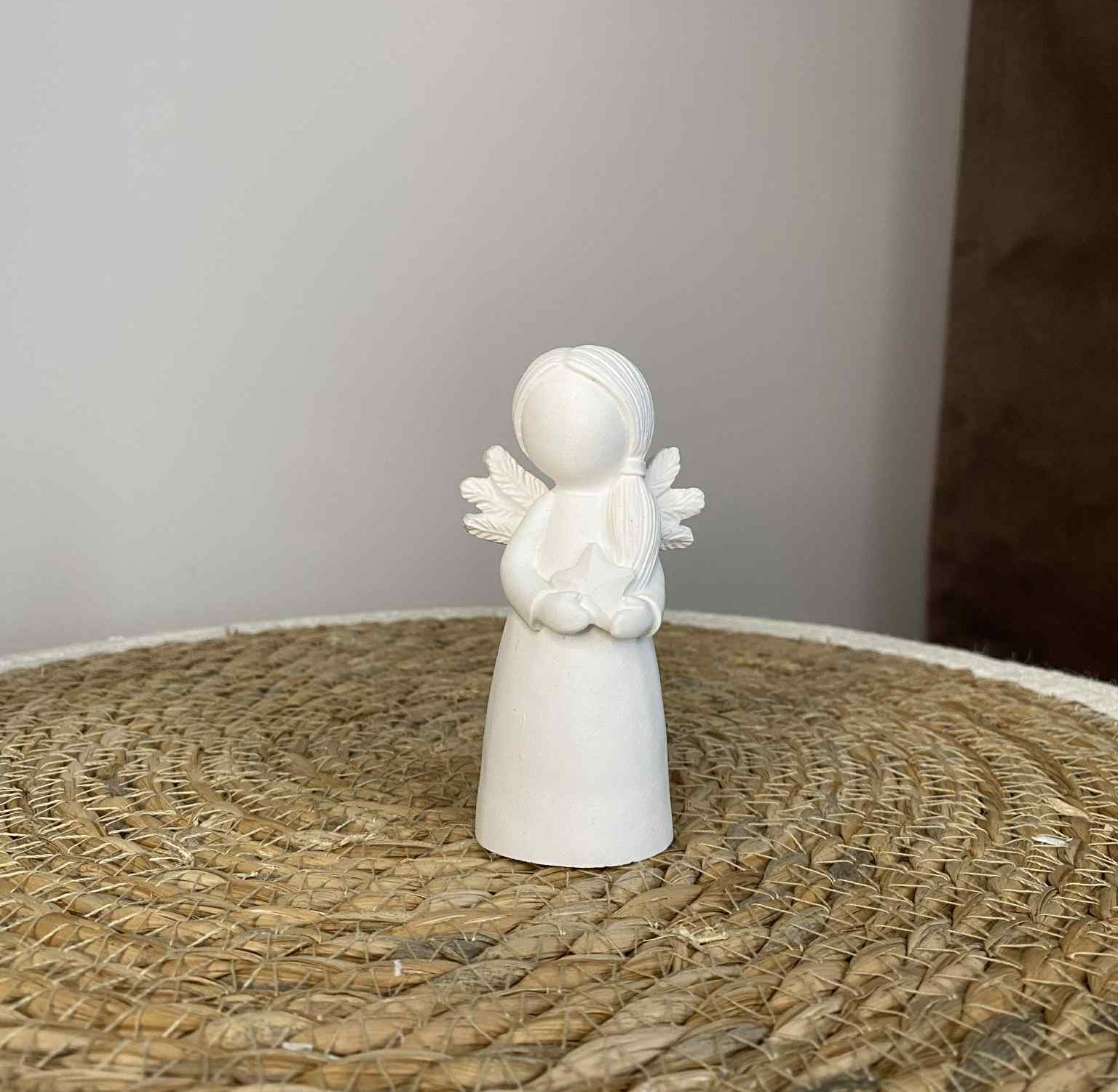 Švelni ir miela rankų darbo statulėlė, vaizduojanti mergaitę-angeliukę, laikančią žvaigždutę. Ji simbolizuoja viltį, šviesą ir apsaugą, todėl puikiai tinka tiek kaip dekoracija namuose, tiek kaip ypatinga dovana artimam žmogui.