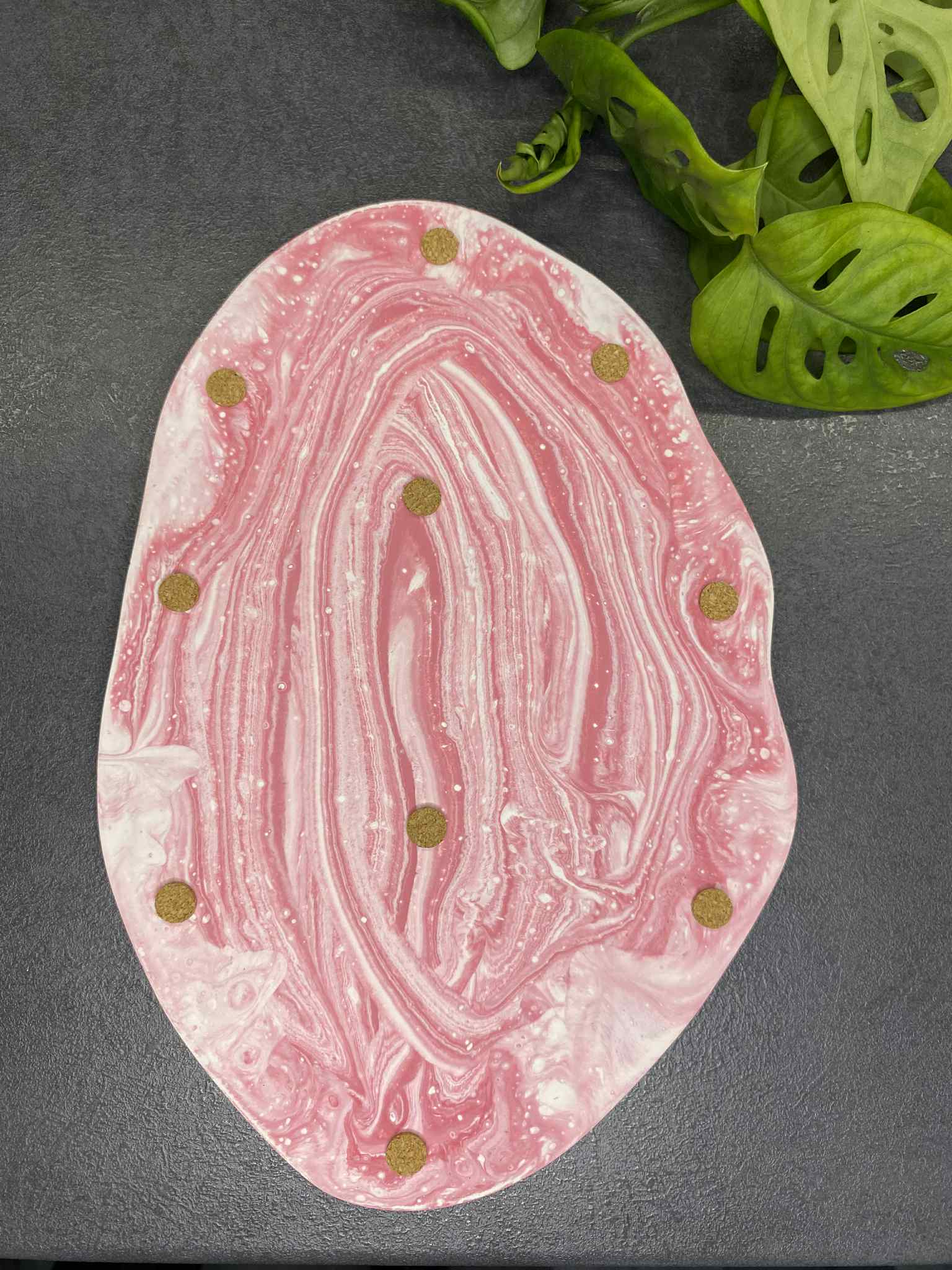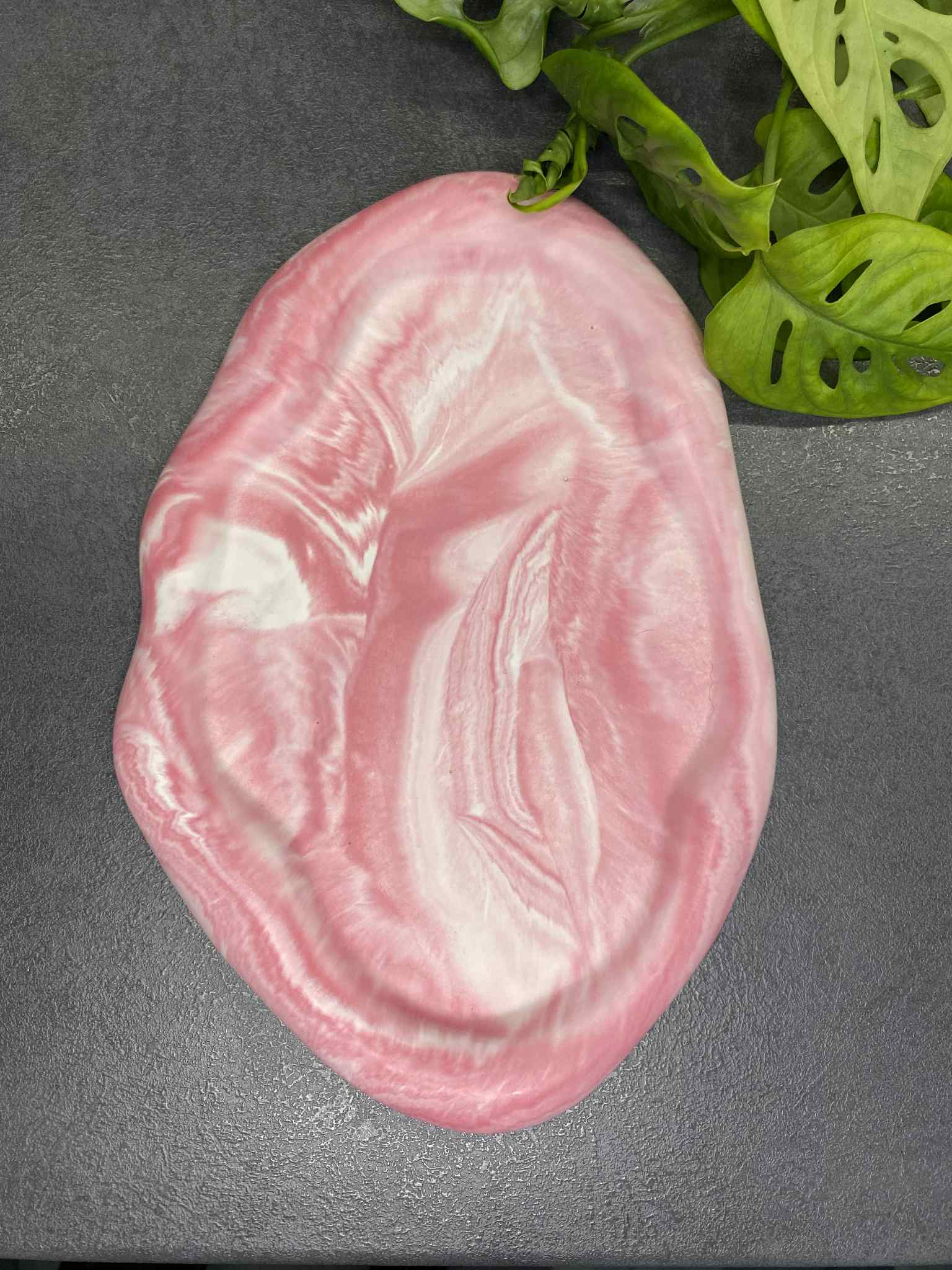 Pagamintas iš tvarios ir ilgaamžės jesmonito medžiagos, šis padėkliukas pasižymi unikaliu dizainu bei kiekvieno gaminio išskirtinumu – nėra dviejų visiškai vienodų! Tvirtas, tačiau lengvas, jis puikiai tiks tiek kaip dekoratyvus akcentas, tiek ir kaip funkcionalus paviršius daiktams laikyti.