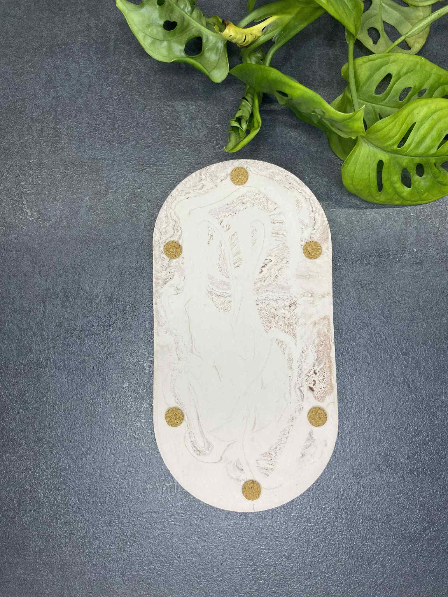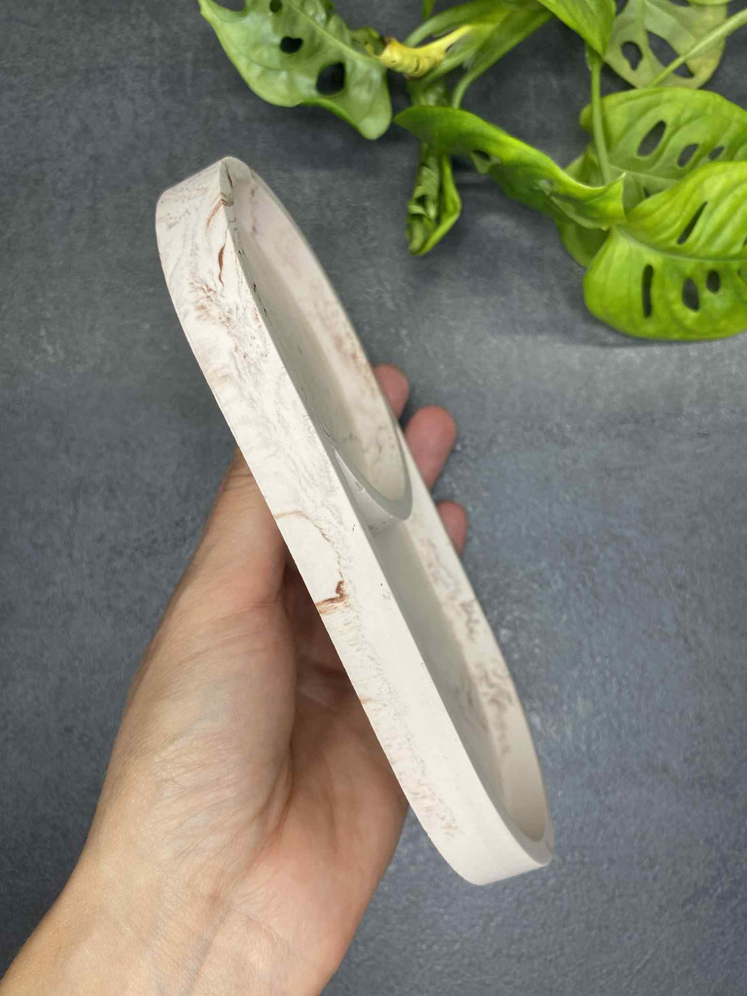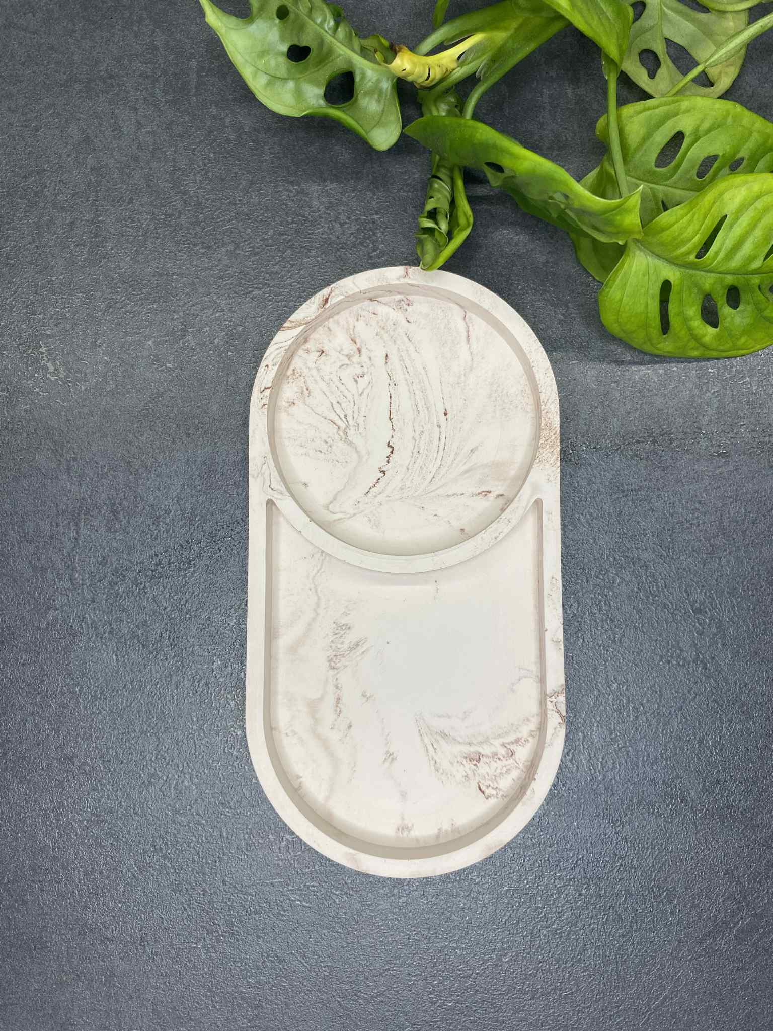 Pagamintas iš tvarios ir ilgaamžės jesmonito medžiagos, šis padėkliukas pasižymi unikaliu dizainu bei kiekvieno gaminio išskirtinumu – nėra dviejų visiškai vienodų! Tvirtas, tačiau lengvas, jis puikiai tiks tiek kaip dekoratyvus akcentas, tiek ir kaip funkcionalus paviršius daiktams laikyti.