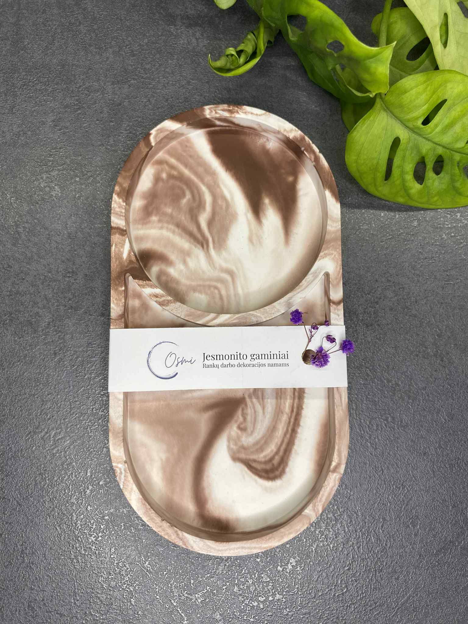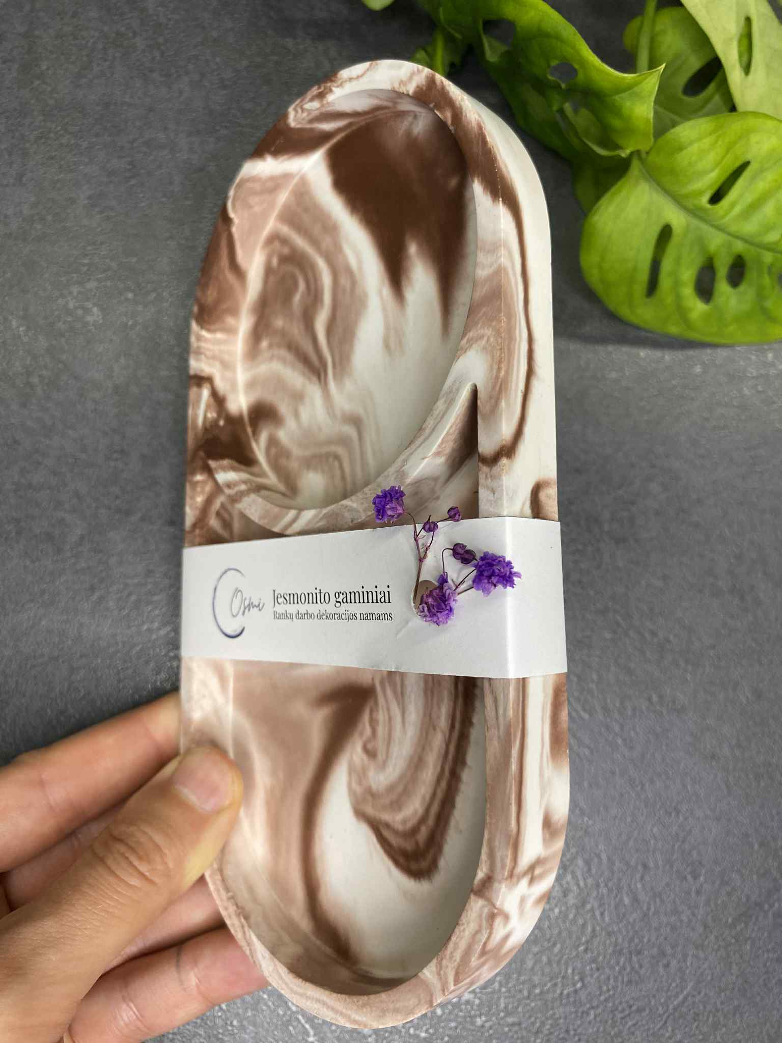 Pagamintas iš tvarios ir ilgaamžės jesmonito medžiagos, šis padėkliukas pasižymi unikaliu dizainu bei kiekvieno gaminio išskirtinumu – nėra dviejų visiškai vienodų! Tvirtas, tačiau lengvas, jis puikiai tiks tiek kaip dekoratyvus akcentas, tiek ir kaip funkcionalus paviršius daiktams laikyti.