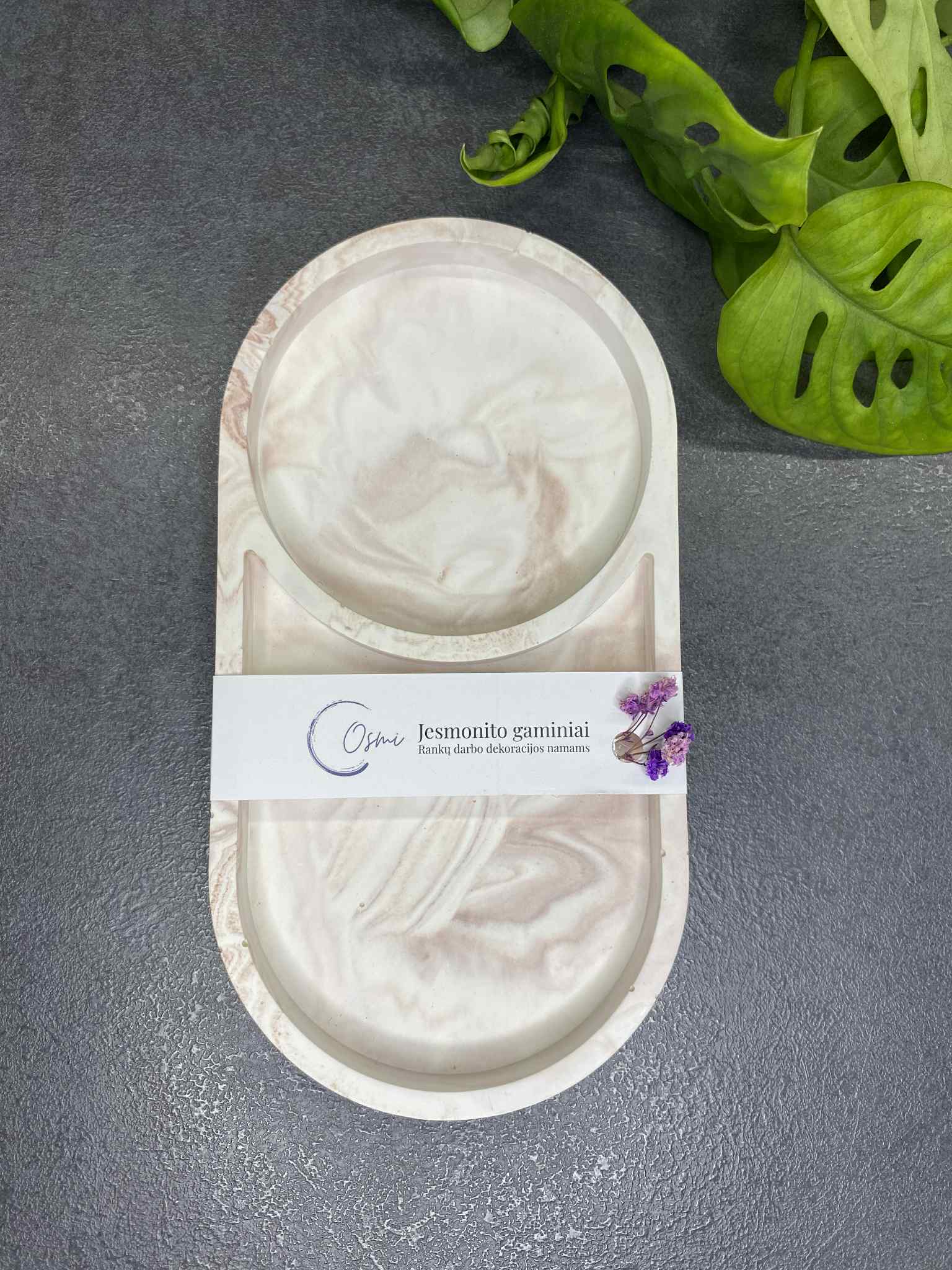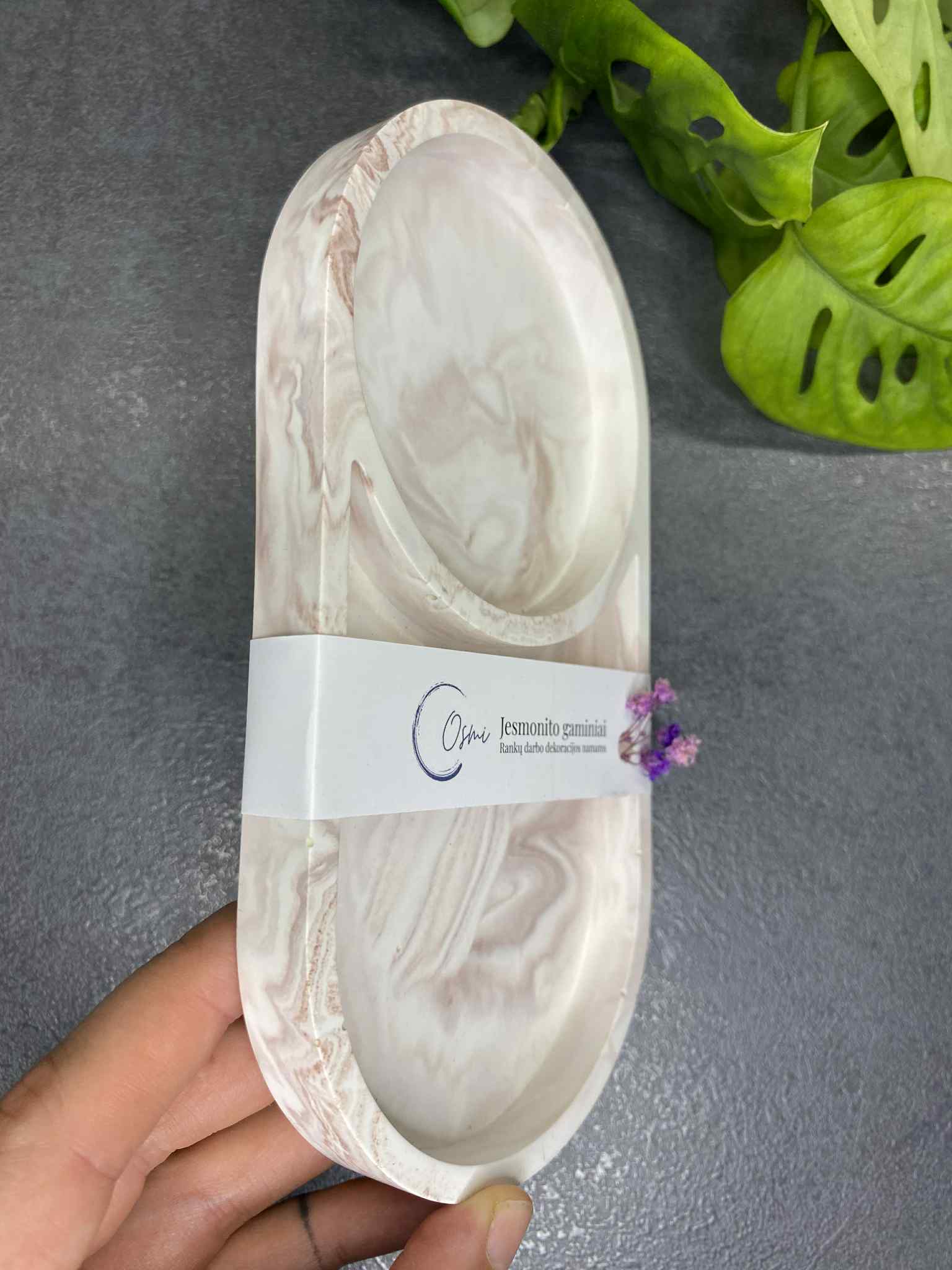 Pagamintas iš tvarios ir ilgaamžės jesmonito medžiagos, šis padėkliukas pasižymi unikaliu dizainu bei kiekvieno gaminio išskirtinumu – nėra dviejų visiškai vienodų! Tvirtas, tačiau lengvas, jis puikiai tiks tiek kaip dekoratyvus akcentas, tiek ir kaip funkcionalus paviršius daiktams laikyti.