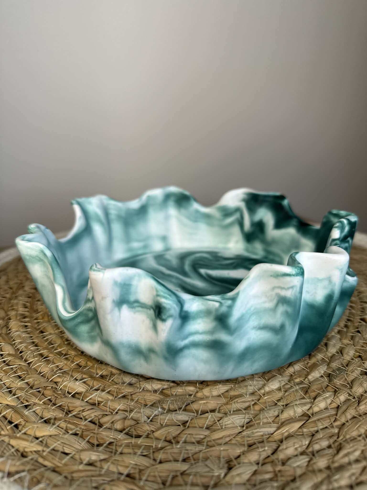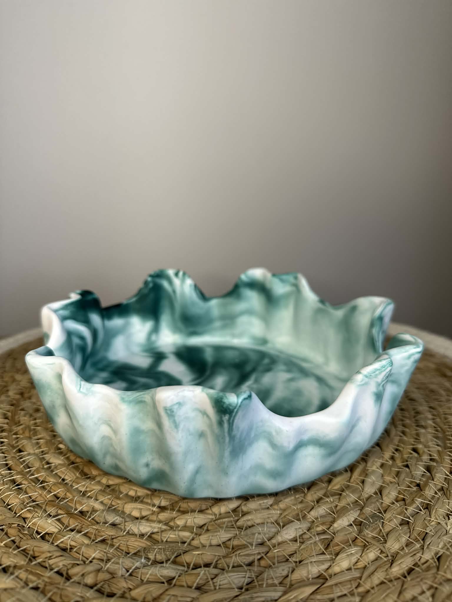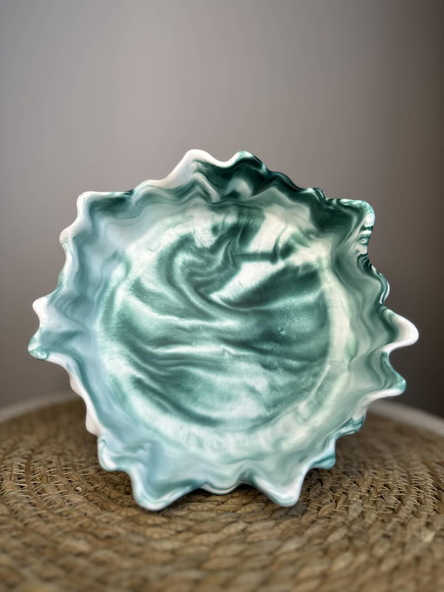 Šis unikalus rankų darbo dubenėlis iš jesmonito – stilingas ir funkcionalus interjero akcentas. Kiekvienas gaminys kuriamas individualiai, todėl pasižymi savitu marmuriniu raštu ir subtiliu dizainu.