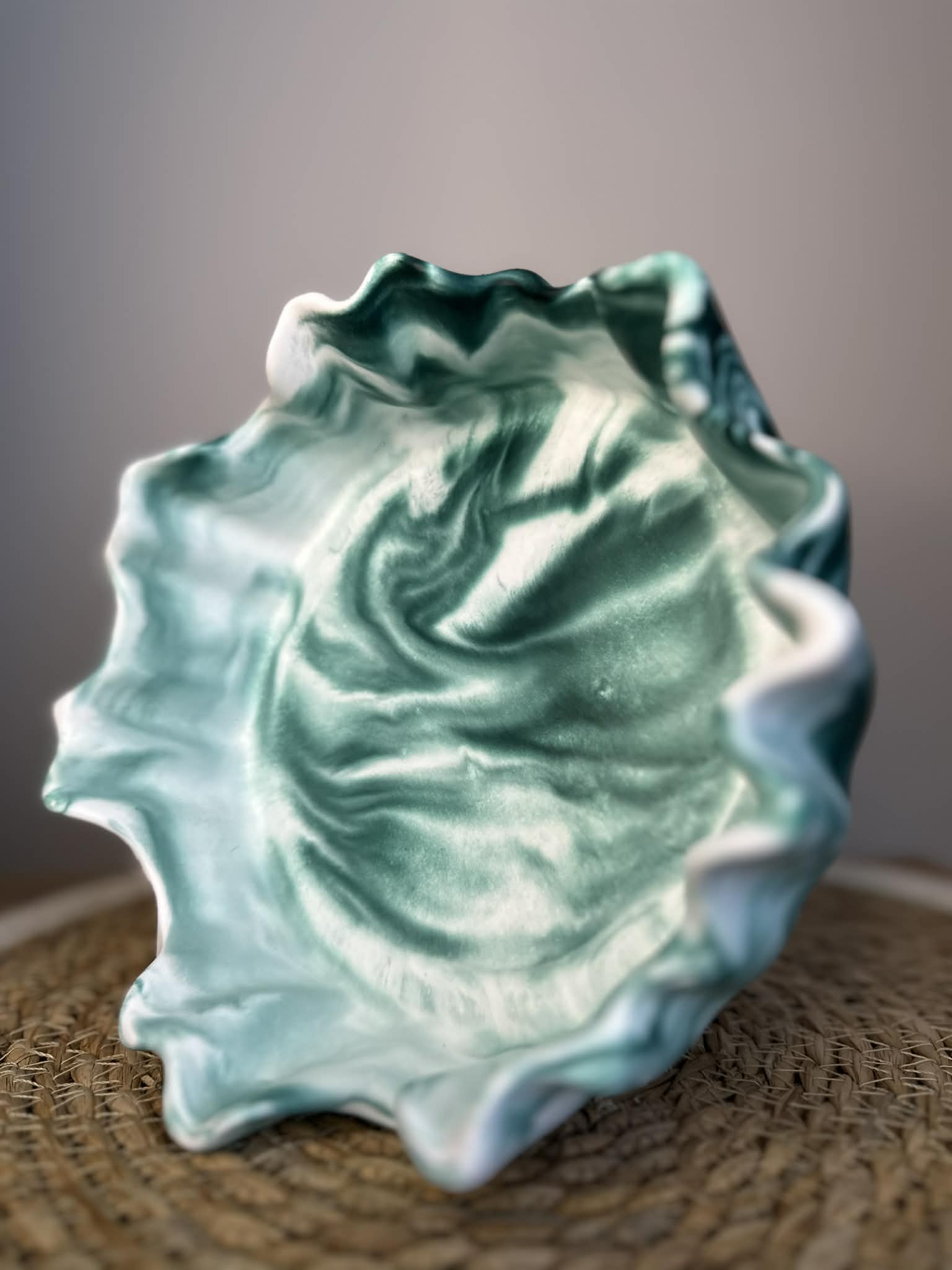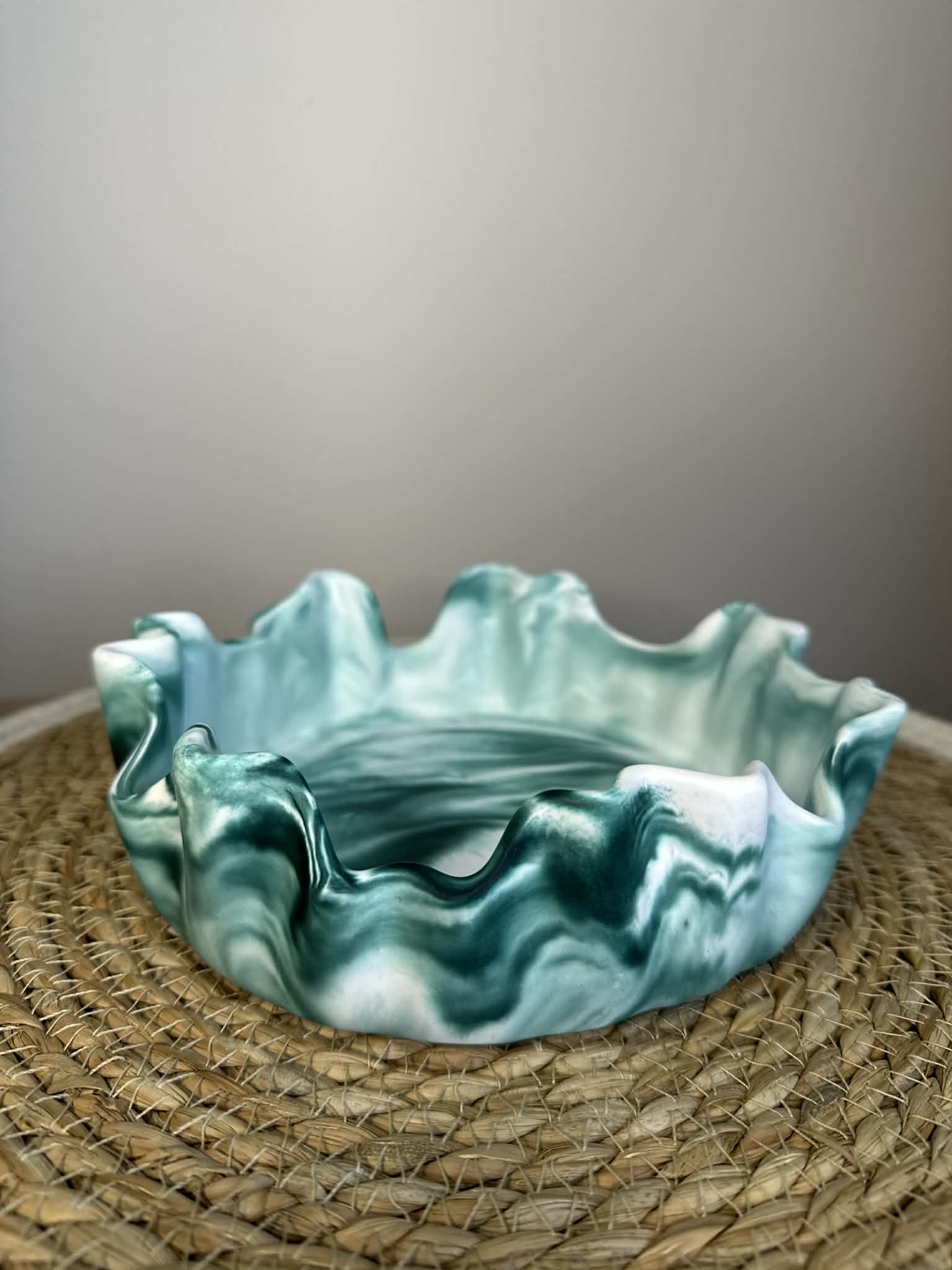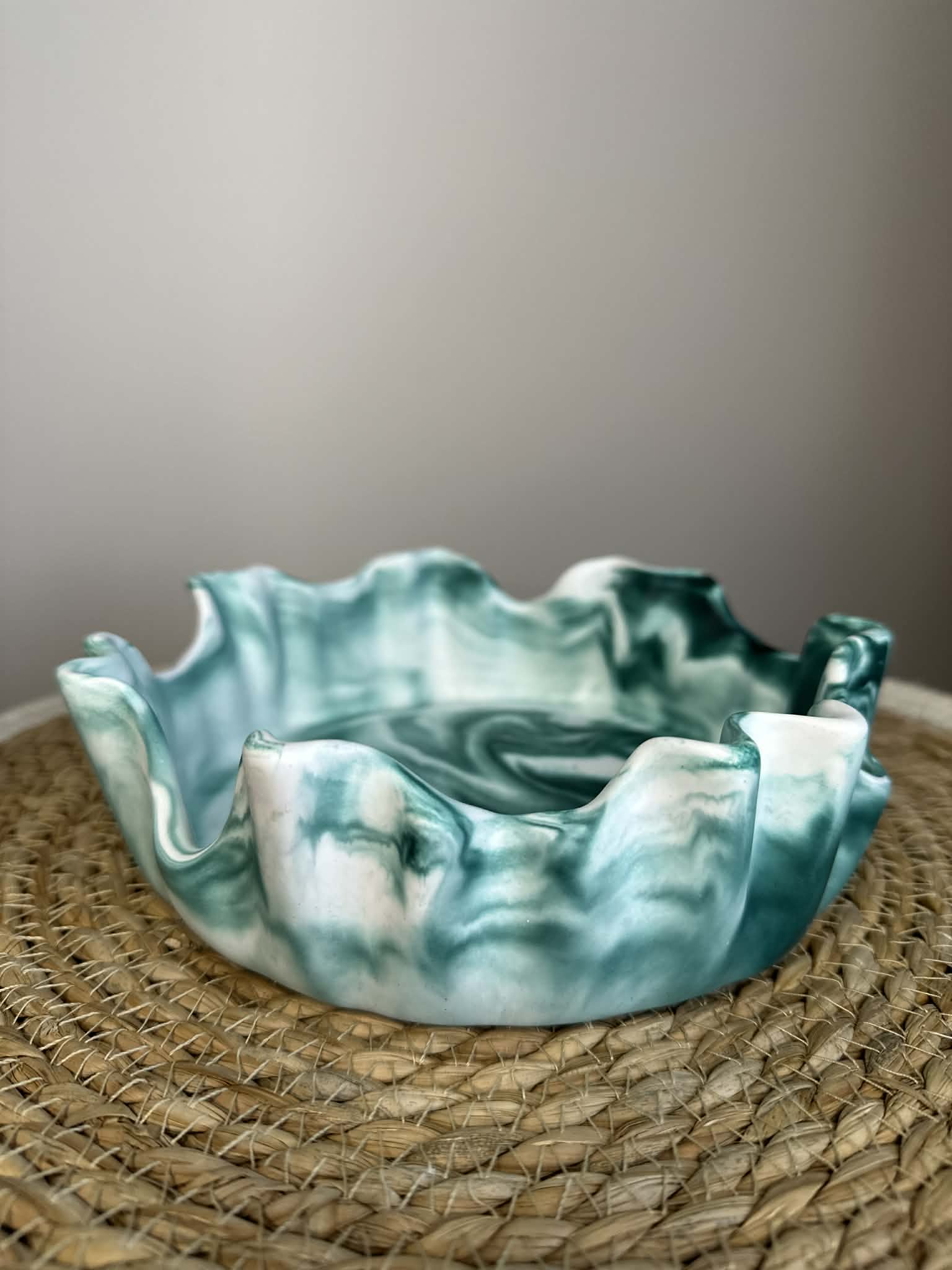Šis unikalus rankų darbo dubenėlis iš jesmonito – stilingas ir funkcionalus interjero akcentas. Kiekvienas gaminys kuriamas individualiai, todėl pasižymi savitu marmuriniu raštu ir subtiliu dizainu.