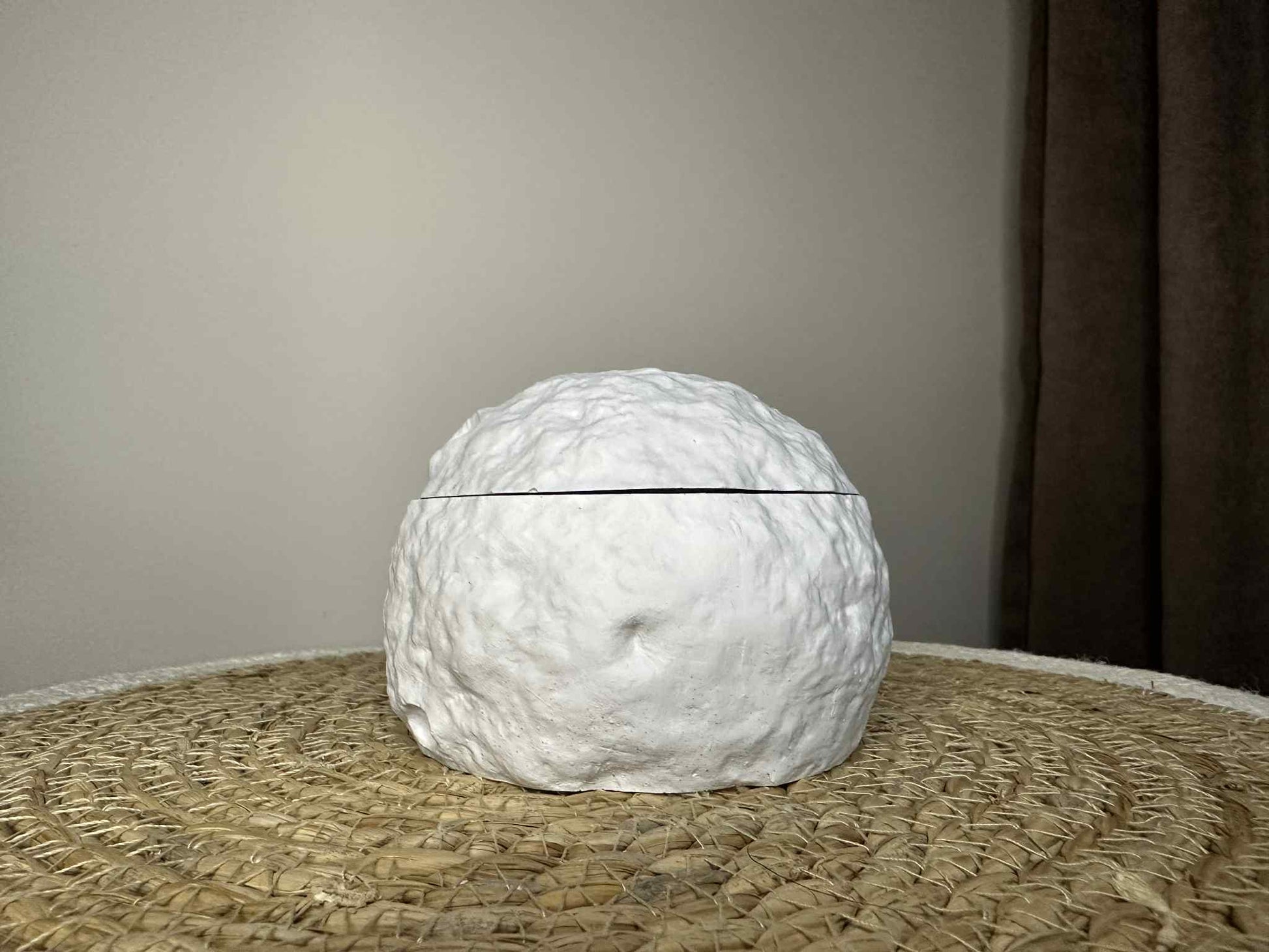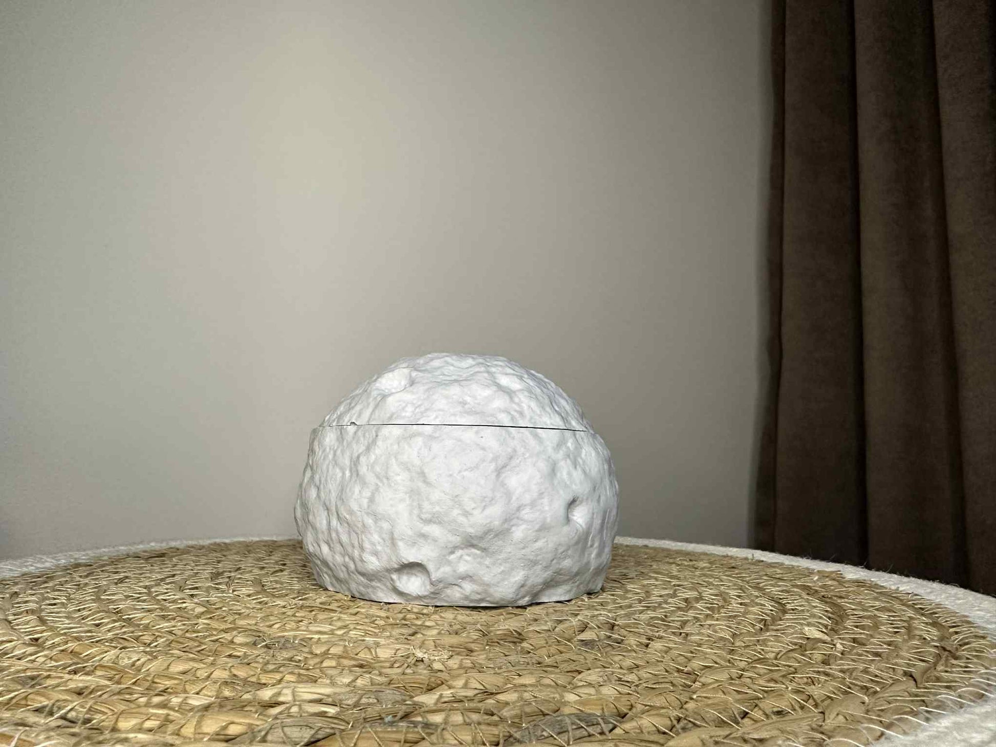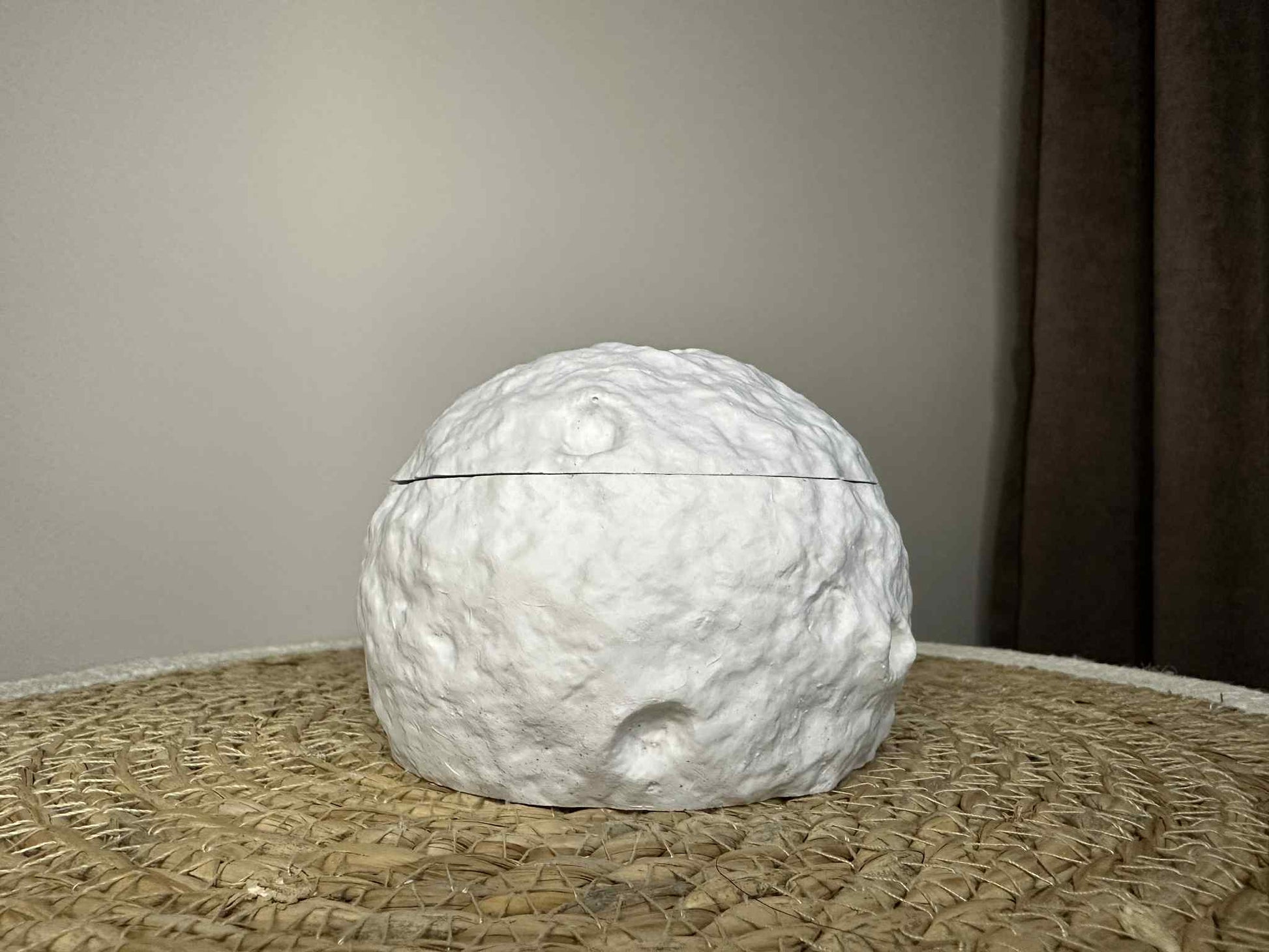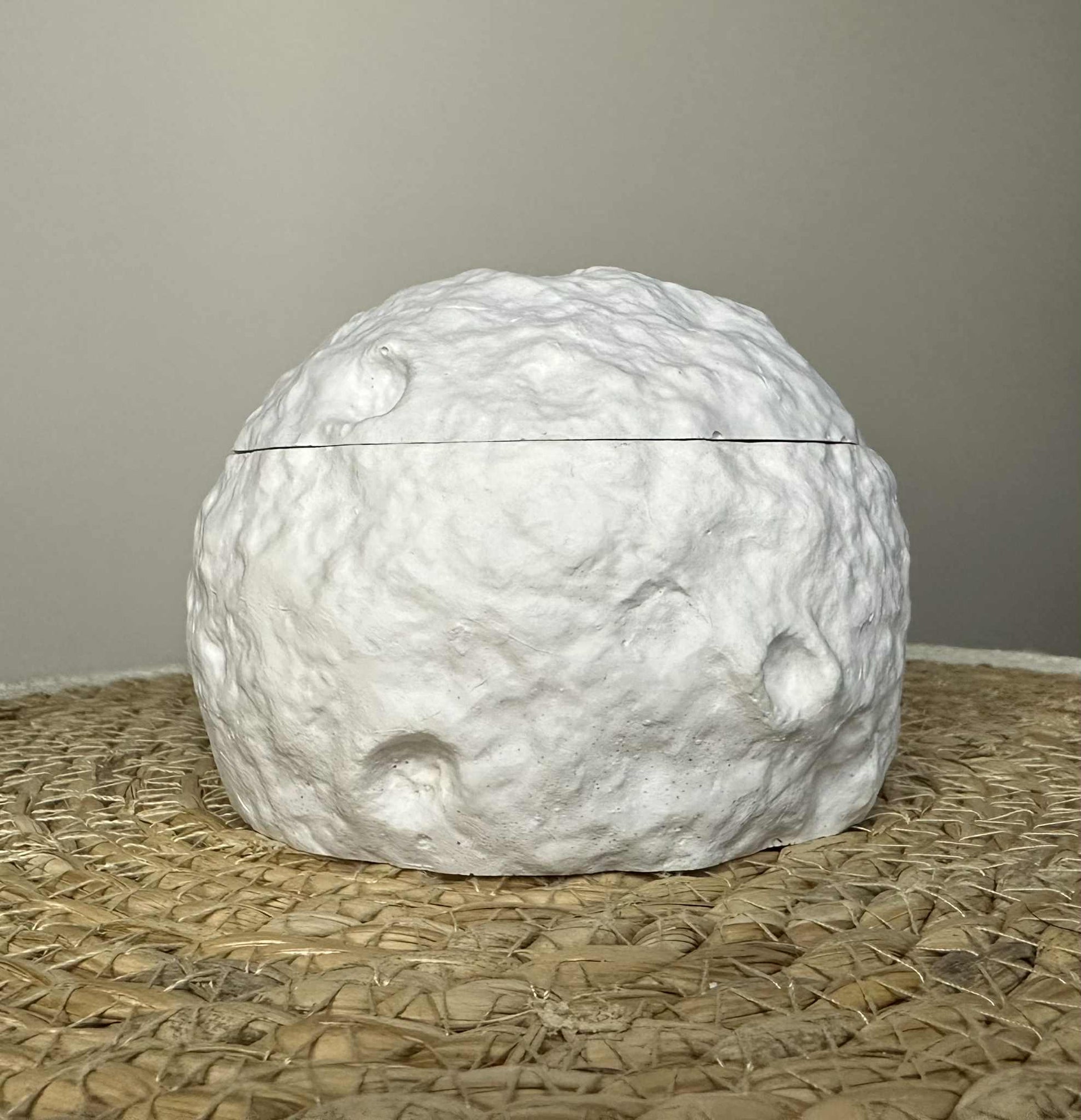 Unikali ir išraiškinga – ši rankų darbo jesmonito žvakė sukurta įkvėpta mėnulio paviršiaus. Ovalus indelis su organiškais įdubimais primena kraterius ir suteikia šiai žvakei išskirtinę, modernią estetiką. Tai ne tik jaukiai deganti žvakė, bet ir akį traukiantis interjero akcentas.