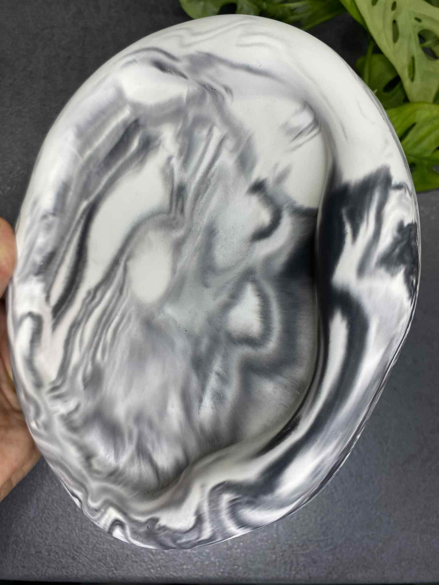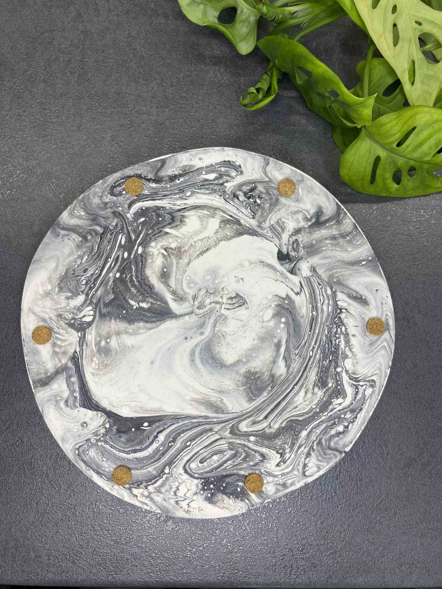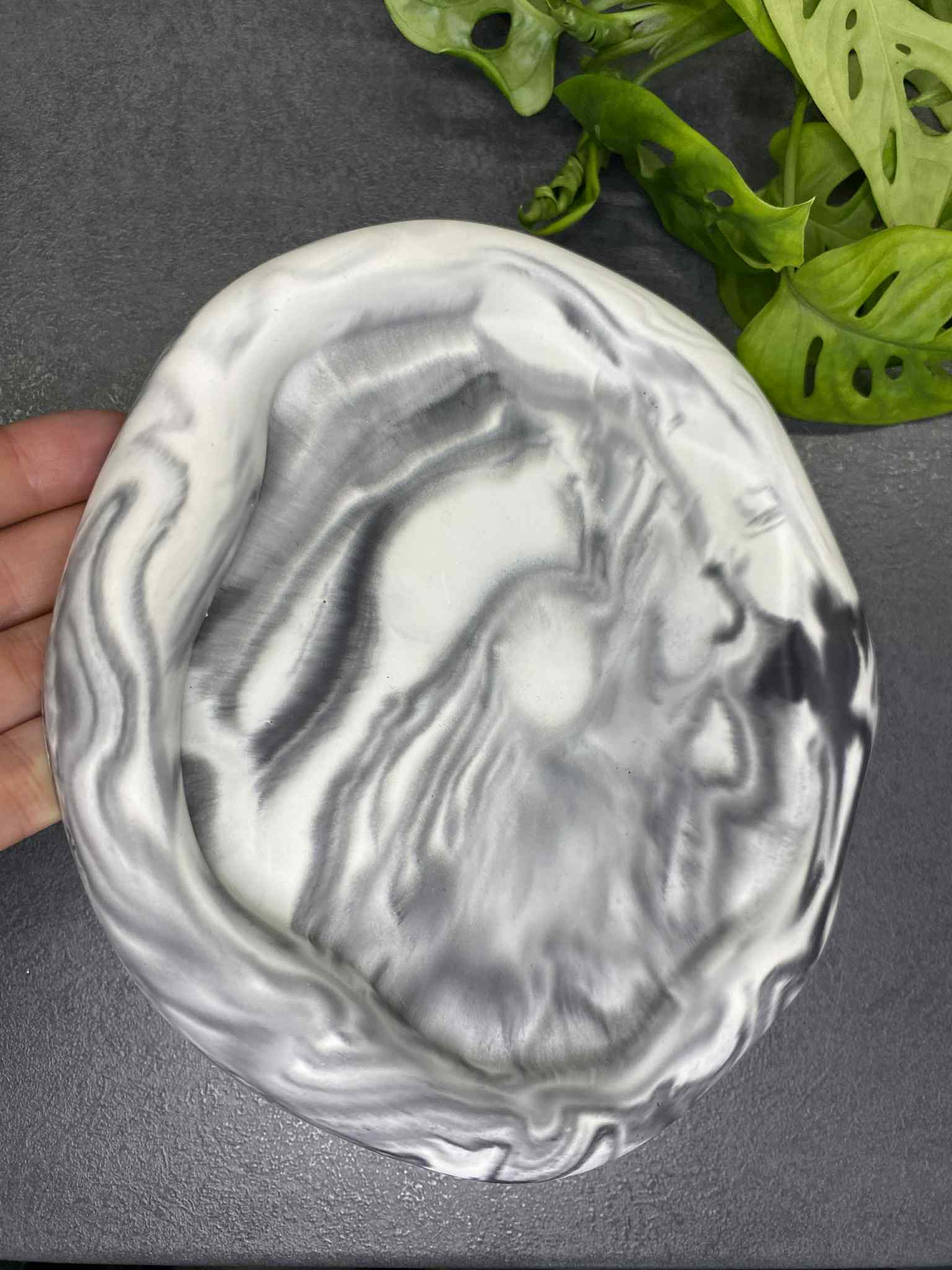 Pagamintas iš tvarios ir ilgaamžės jesmonito medžiagos, šis padėkliukas pasižymi unikaliu dizainu bei kiekvieno gaminio išskirtinumu – nėra dviejų visiškai vienodų! Tvirtas, tačiau lengvas, jis puikiai tiks tiek kaip dekoratyvus akcentas, tiek ir kaip funkcionalus paviršius daiktams laikyti.