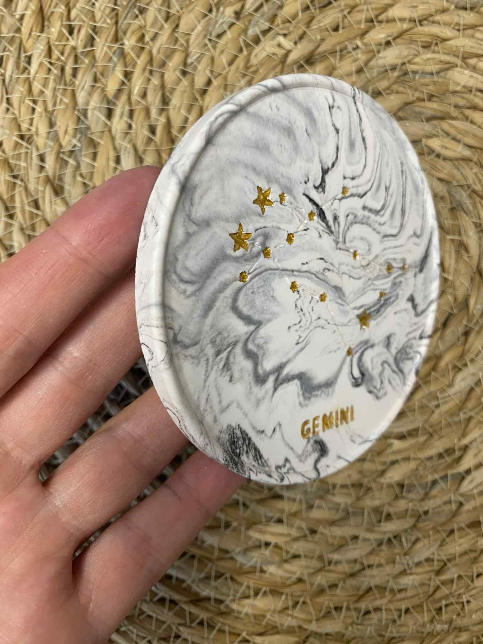 Lengvas ir dinamiškas dizainas įkūnija Dvynių smalsumą bei gyvybingumą. Auksinės žvaigždės žiba tarsi dvi mintys, šokančios dangaus erdvėje. Puikus pasirinkimas kūrybingiems, komunikabiliems ir nuolat judantiems žmonėms.