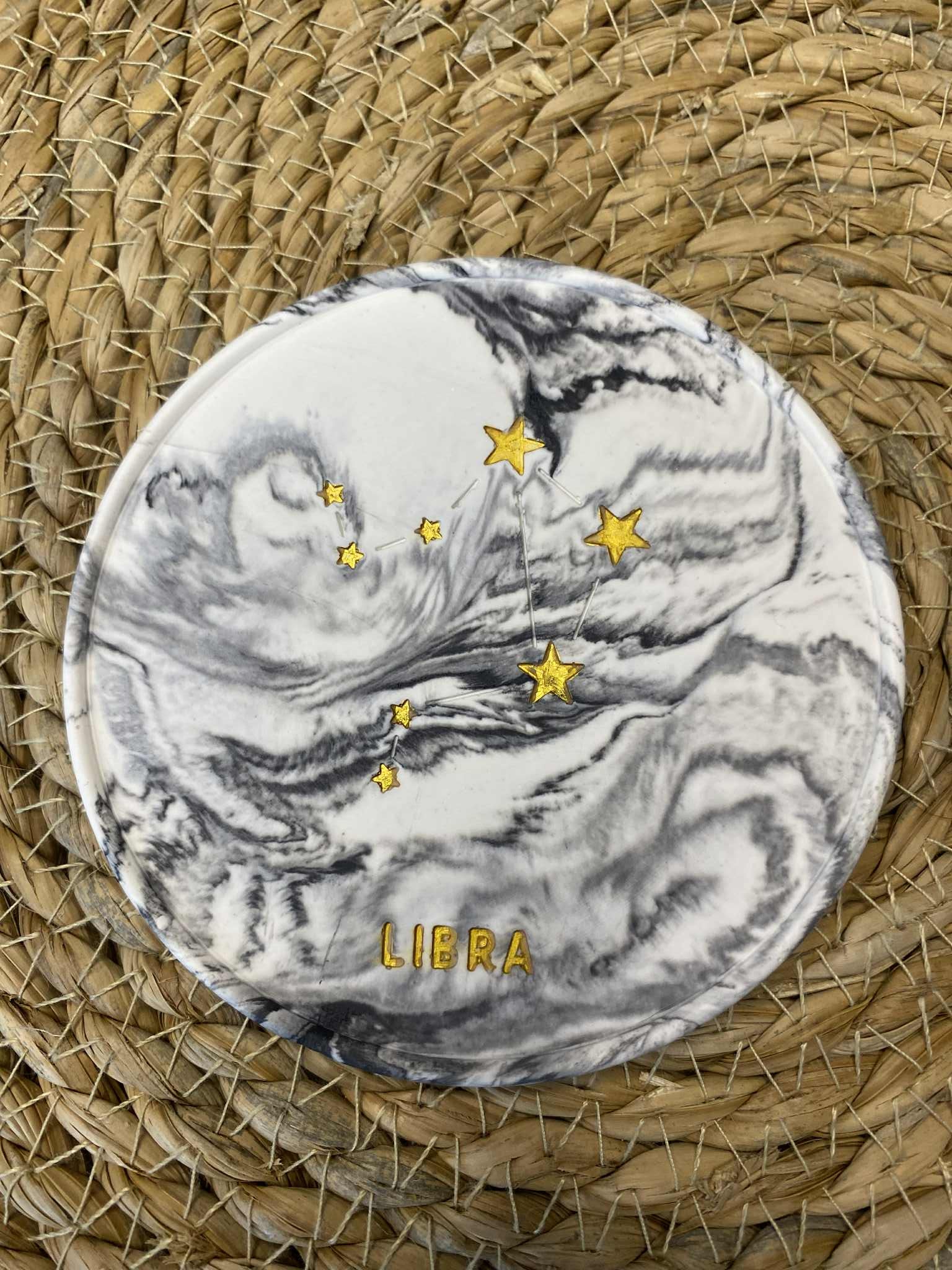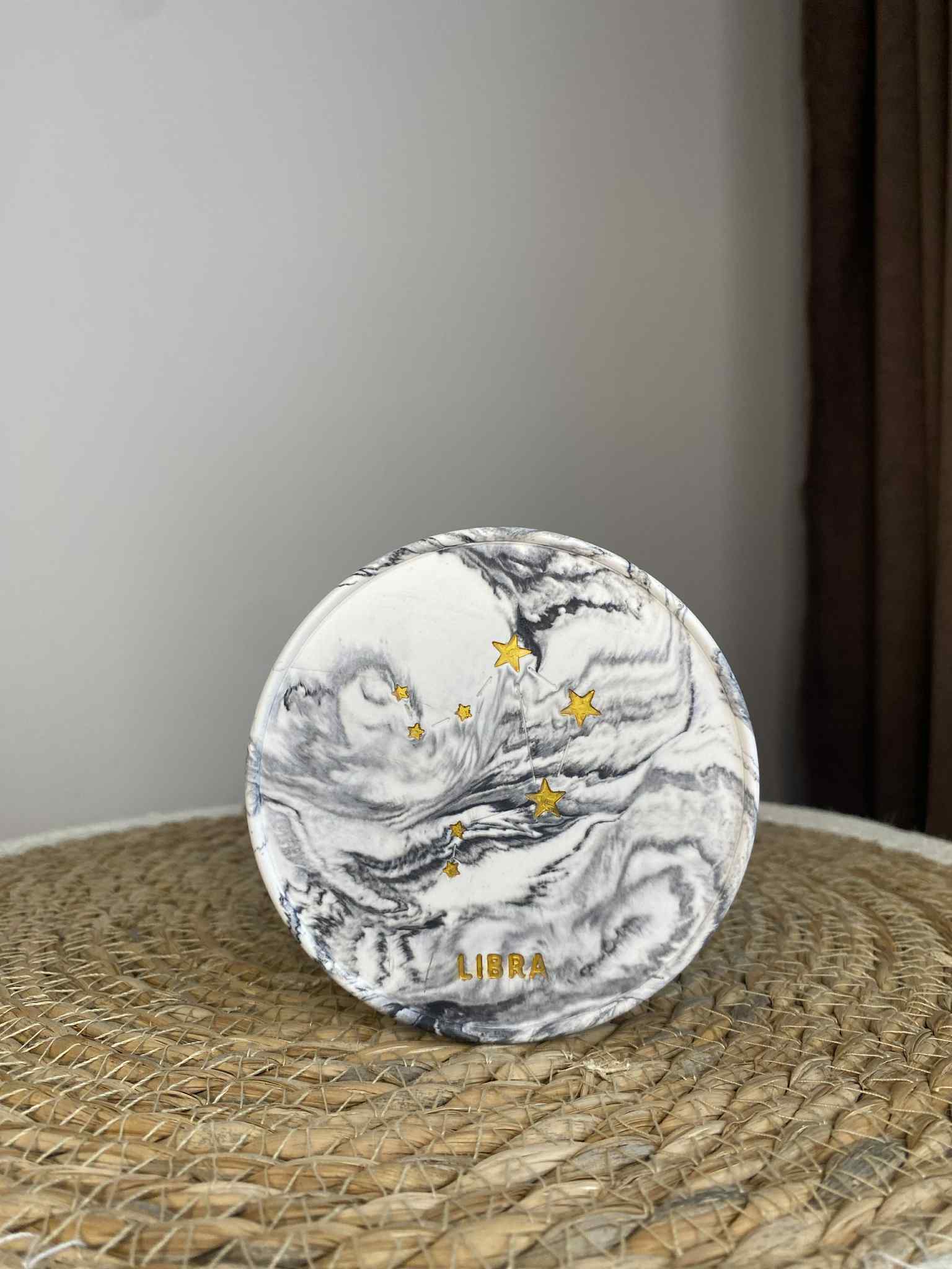 Estetiškas ir subalansuotas – šis padėkliukas perteikia Svarstyklių siekį harmonijos. Juodos ir baltos spalvos simbolizuoja pusiausvyrą, o aukso žvaigždės – eleganciją.