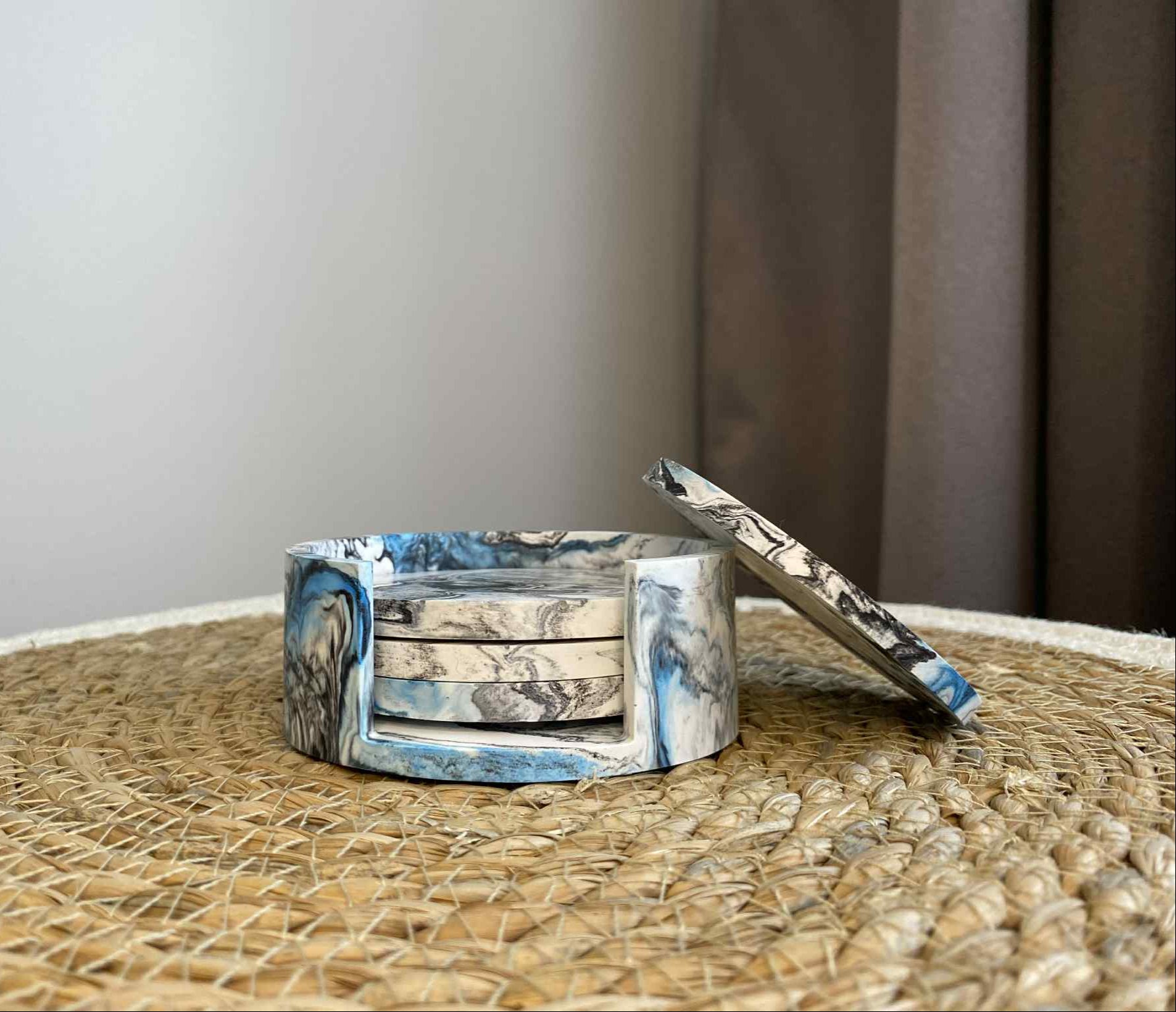 Puodelių padėkliukų rinkinys (mėlyna/juoda)
