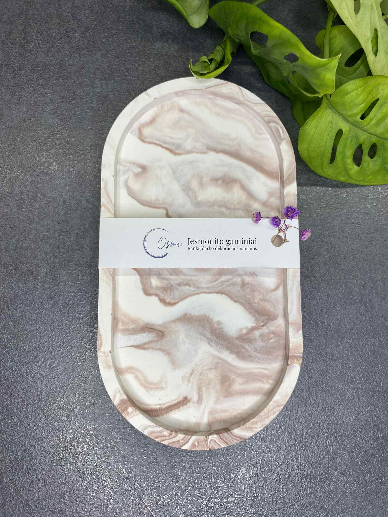Pagamintas iš tvarios ir ilgaamžės jesmonito medžiagos, šis padėkliukas pasižymi unikaliu dizainu bei kiekvieno gaminio išskirtinumu – nėra dviejų visiškai vienodų! Tvirtas, tačiau lengvas, jis puikiai tiks tiek kaip dekoratyvus akcentas, tiek ir kaip funkcionalus paviršius daiktams laikyti.